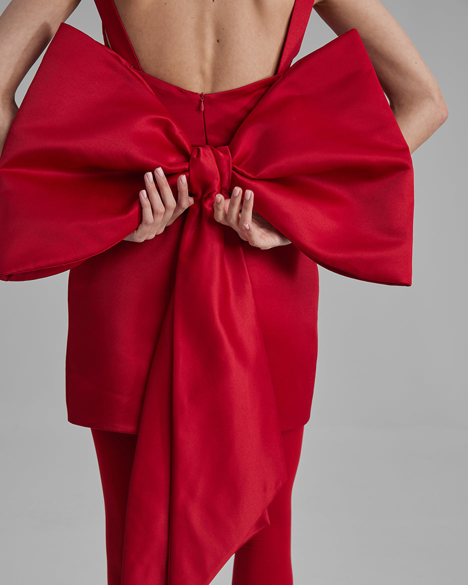 Everyone should have our "mini dress Joy in black with the removable big bow" in their wardrobe. It's the perfect little black dress, versatile enough to suit any special occasion. The removable bow adds a touch of elegance when needed, making it a must-have staple in every woman's collection.