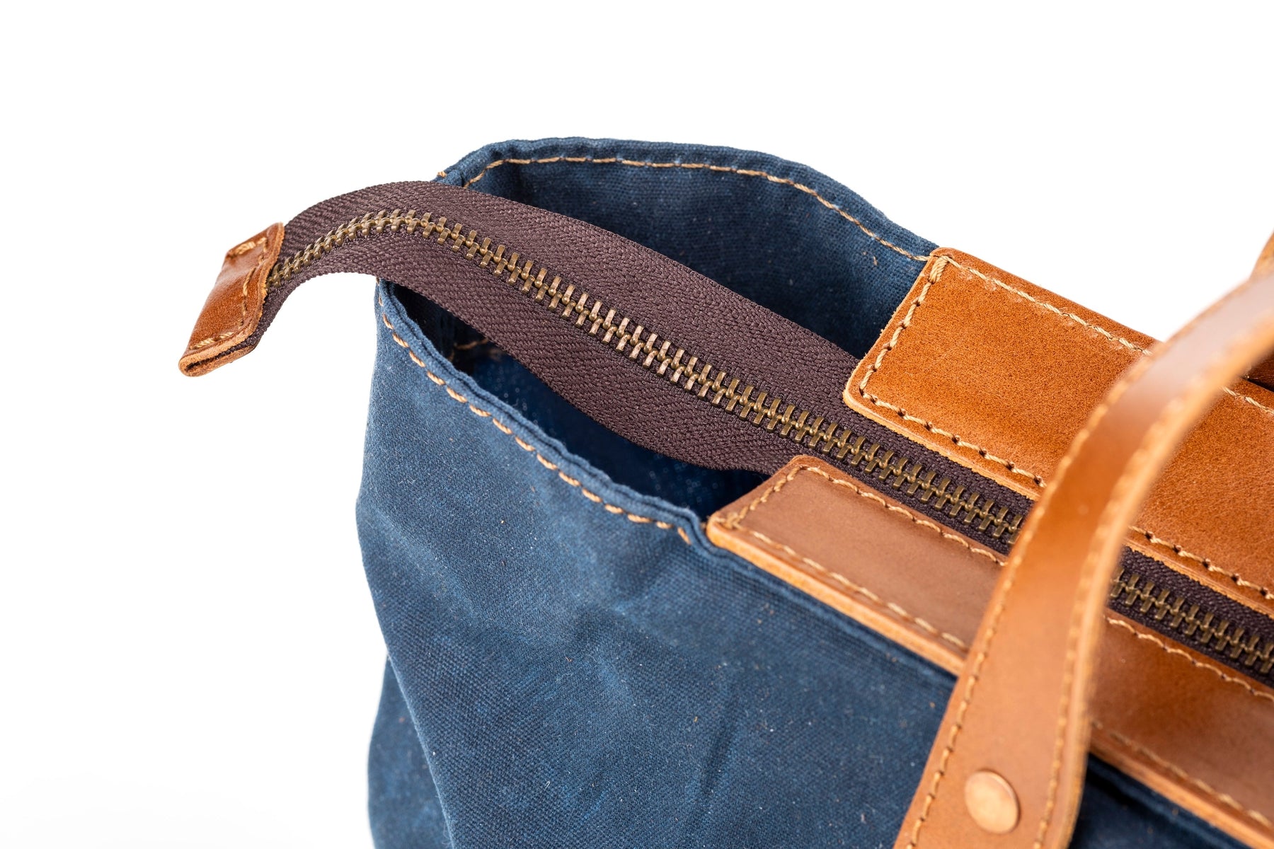 Timeless elegance and handiness meet in this vintage bag! Made of fine waxed American fabric, this bag offers a charming vintage pull-up effect that wins you over at first sight. Leather accents add a touch of class, while the robust design guarantees strength and durability. Lightweight yet incredibly spacious, it comes with a handy internal pocket for organizing your essentials. Perfect for accompanying you in everyday life, from shopping to traveling.