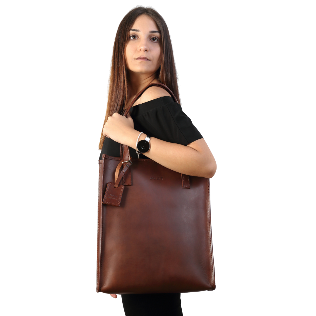 The DUST Model 105 women's leather Tote bag has also been designed to be carried as hand baggage on a plane.