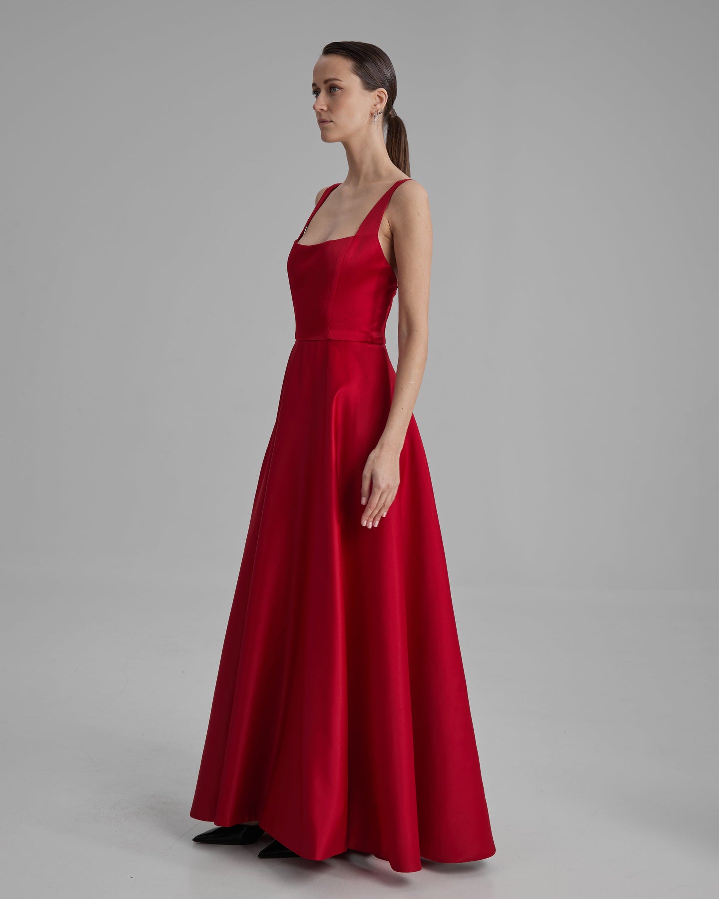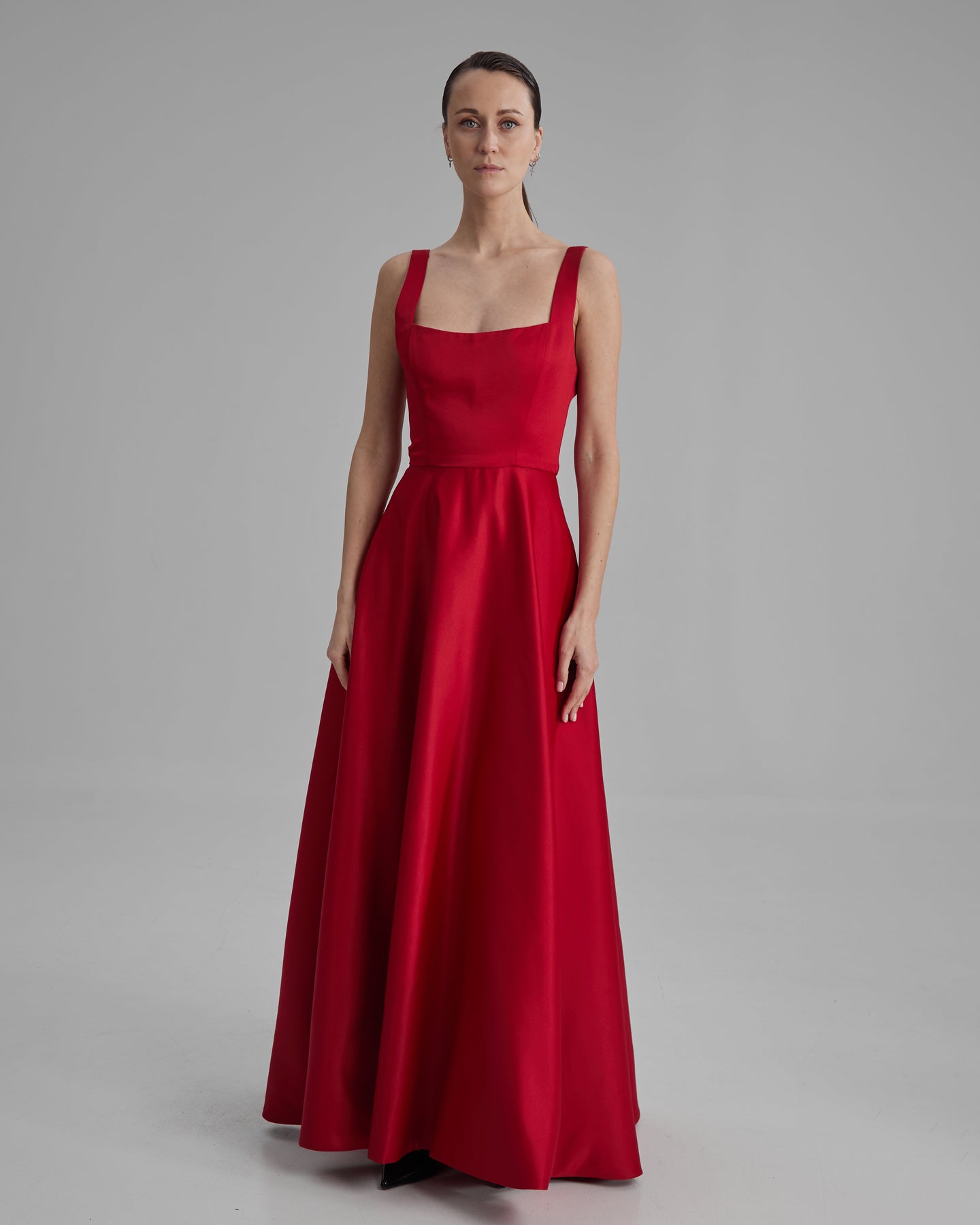 The A-line skirt of this maxi dress adds a touch of feminine sophistication, gracefully flowing from the cinched waistline to create a romantic and captivating movement with every step. The clean lines and structured design of the Mikado fabric perfectly complement the A-line silhouette, resulting in a look that is both refined and contemporary.
