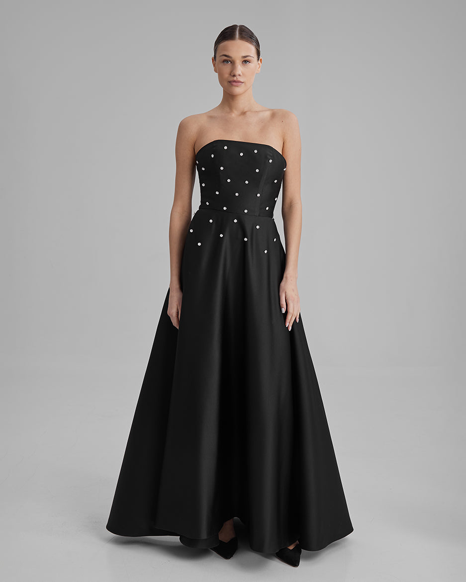 Experience the essence of romance with our captivating maxi Eve dress, meticulously crafted from luxurious Mikado fabric. This enchanting ensemble is designed to captivate hearts at city weddings, registry office ceremonies, rehearsal dinners, or intimate elopements. The corseted straight neckline of the dress exudes timeless charm and classic elegance, creating a beautifully structured silhouette that accentuates your natural grace.