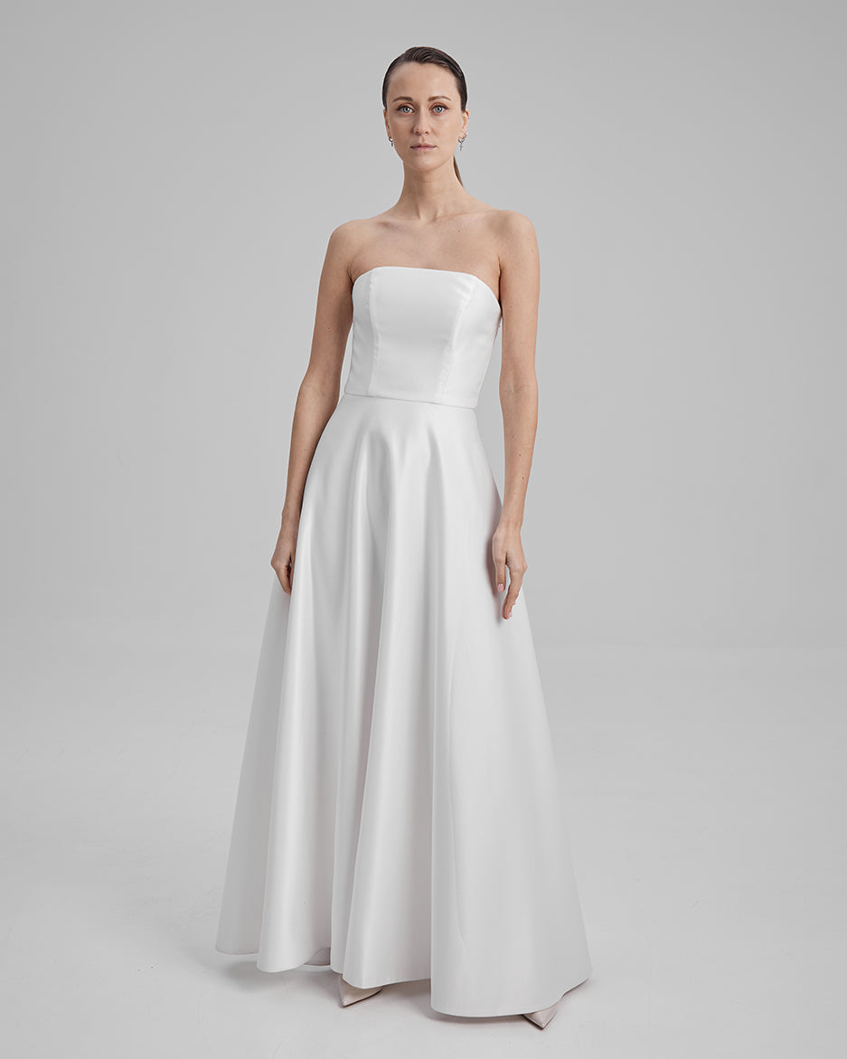 EVE DRESS | Strapless A line maxi dress in white