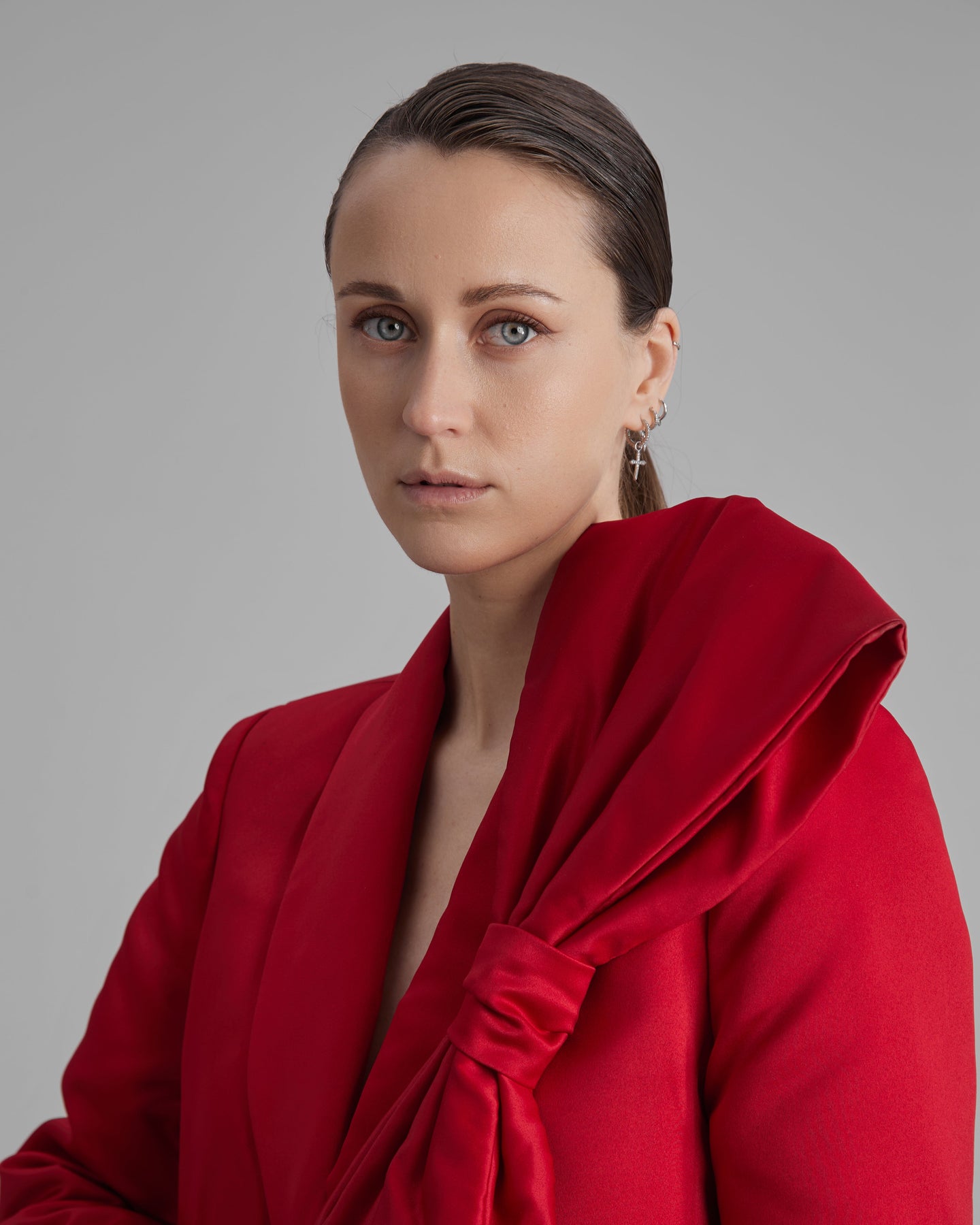 Introducing the "Hope Jacket in Red," a masterpiece crafted from luxurious Mikado fabric that effortlessly marries sophistication with comfort.