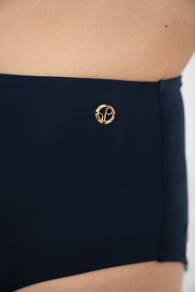 Details - Fully lined- High-waisted bikini bottom- Adorned with the 1 People signature brass logo on the side- Made from soft and light fabric with UV protection (UPF 50+)- Comes in a handmade pouch made from abandoned fishing nets and knitted by empowered Indonesian women