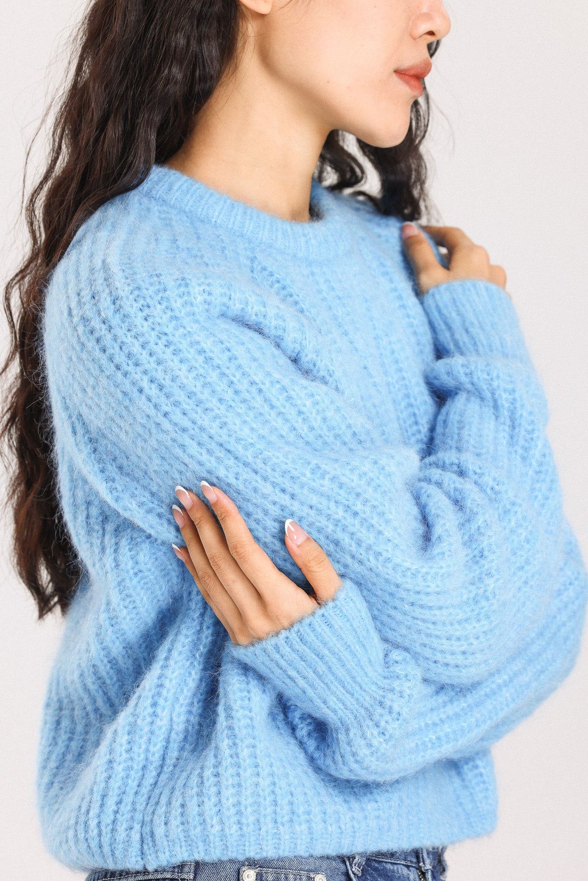 This refreshing Sky Blue sweater brings a calm elegance to your wardrobe, offering both warmth and style.