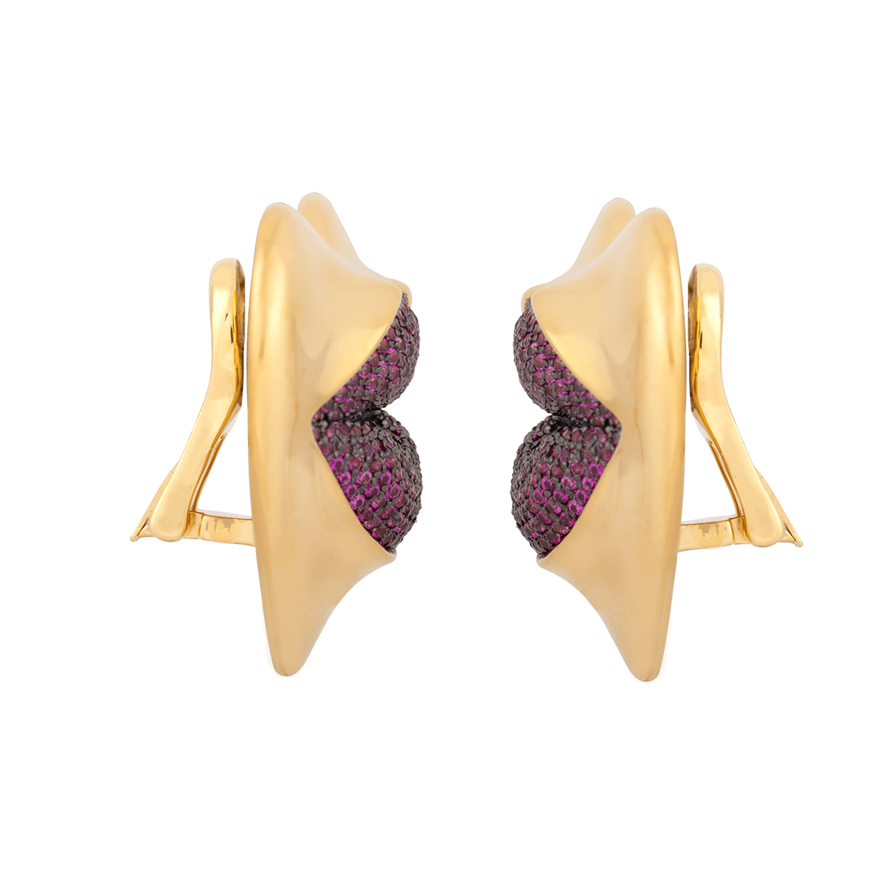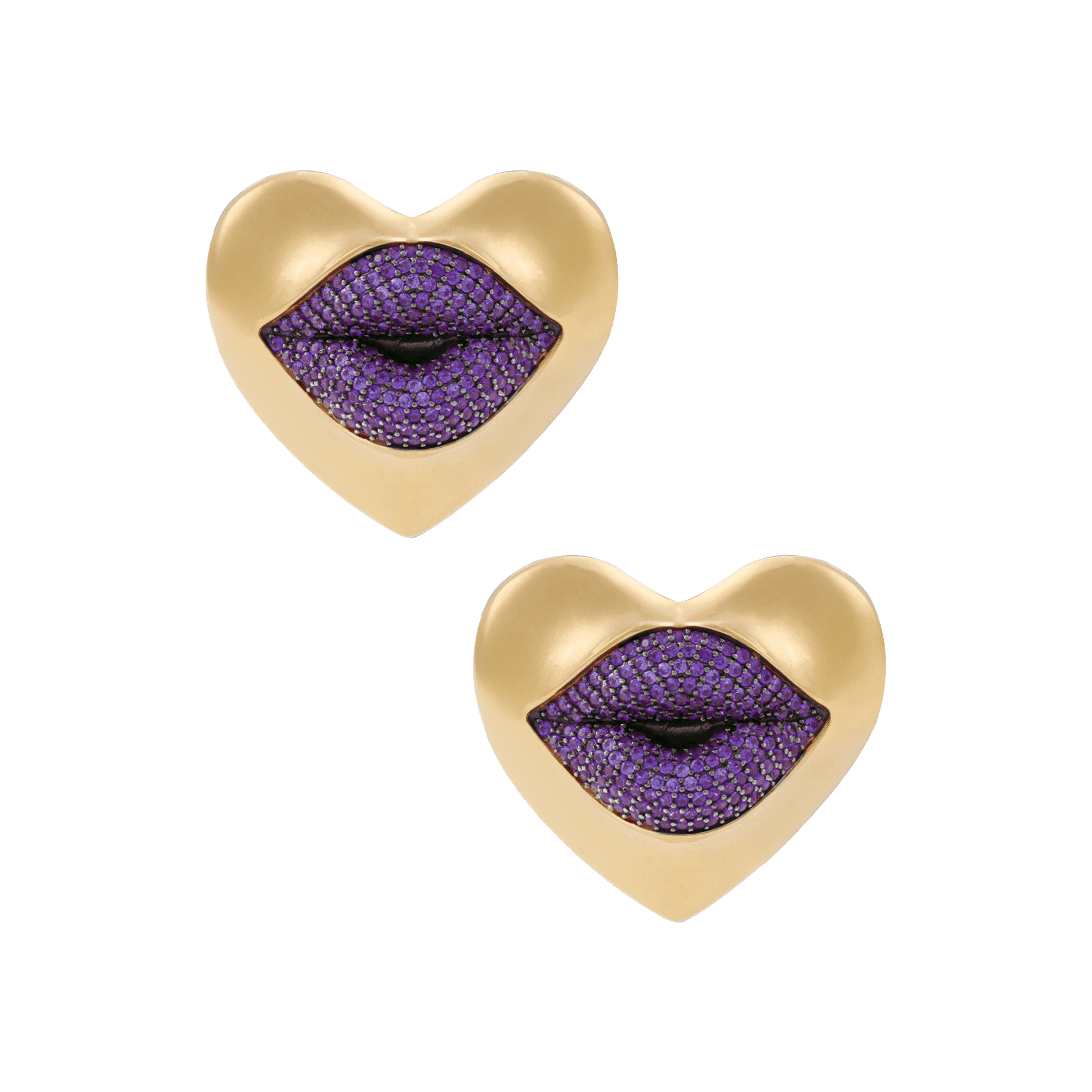 Love lips earrings feature a unique design that blends classic elegance with modern pop art influences and a touch of surrealism. The shimmering gold vermeil heart is beautifully complemented by a bold pair of lips, creating a dreamlike and otherworldly effect.