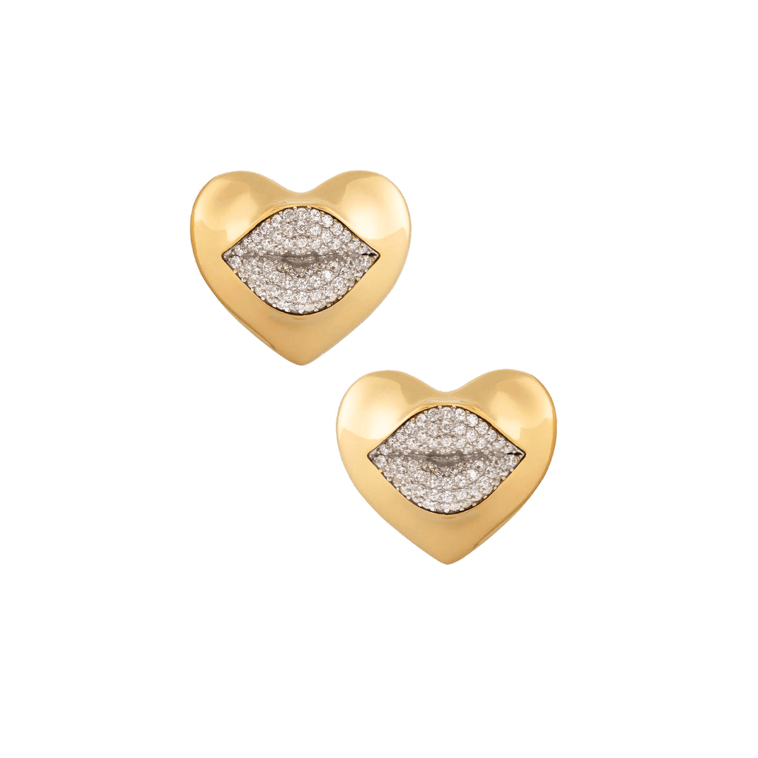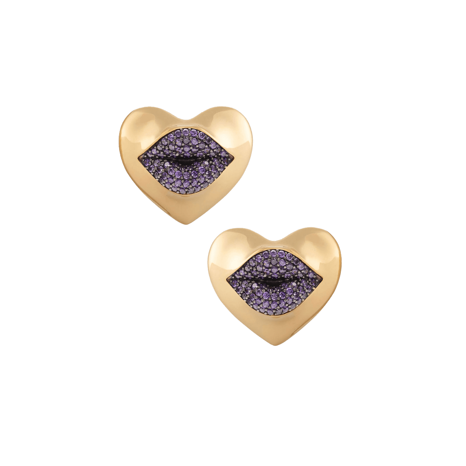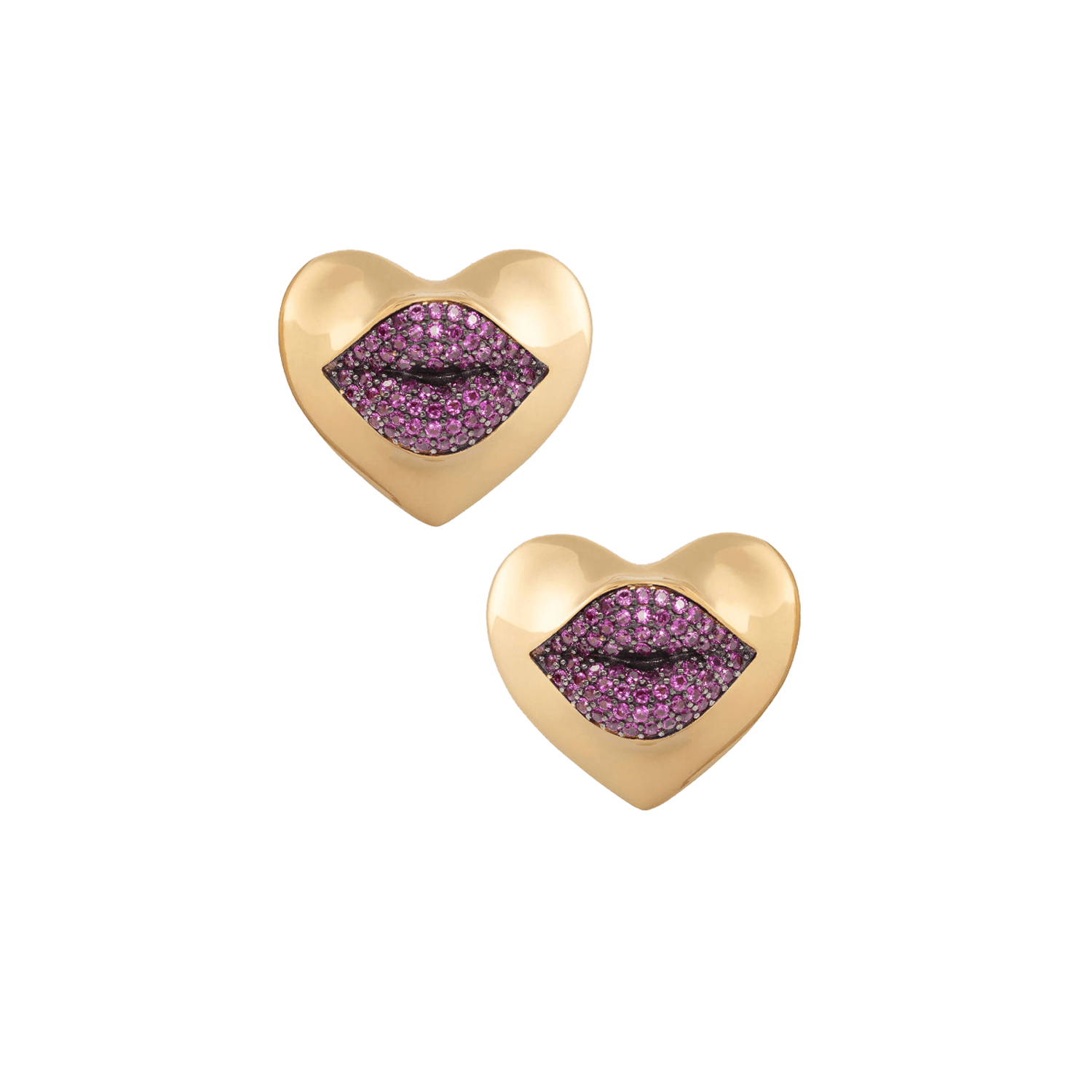 Our heart with lips earrings features a unique design that blends classic elegance with modern pop art influences and a touch of surrealism. The shimmering gold vermeil heart is beautifully complemented by a bold pair of lips, creating a dreamlike and otherworldly effect.