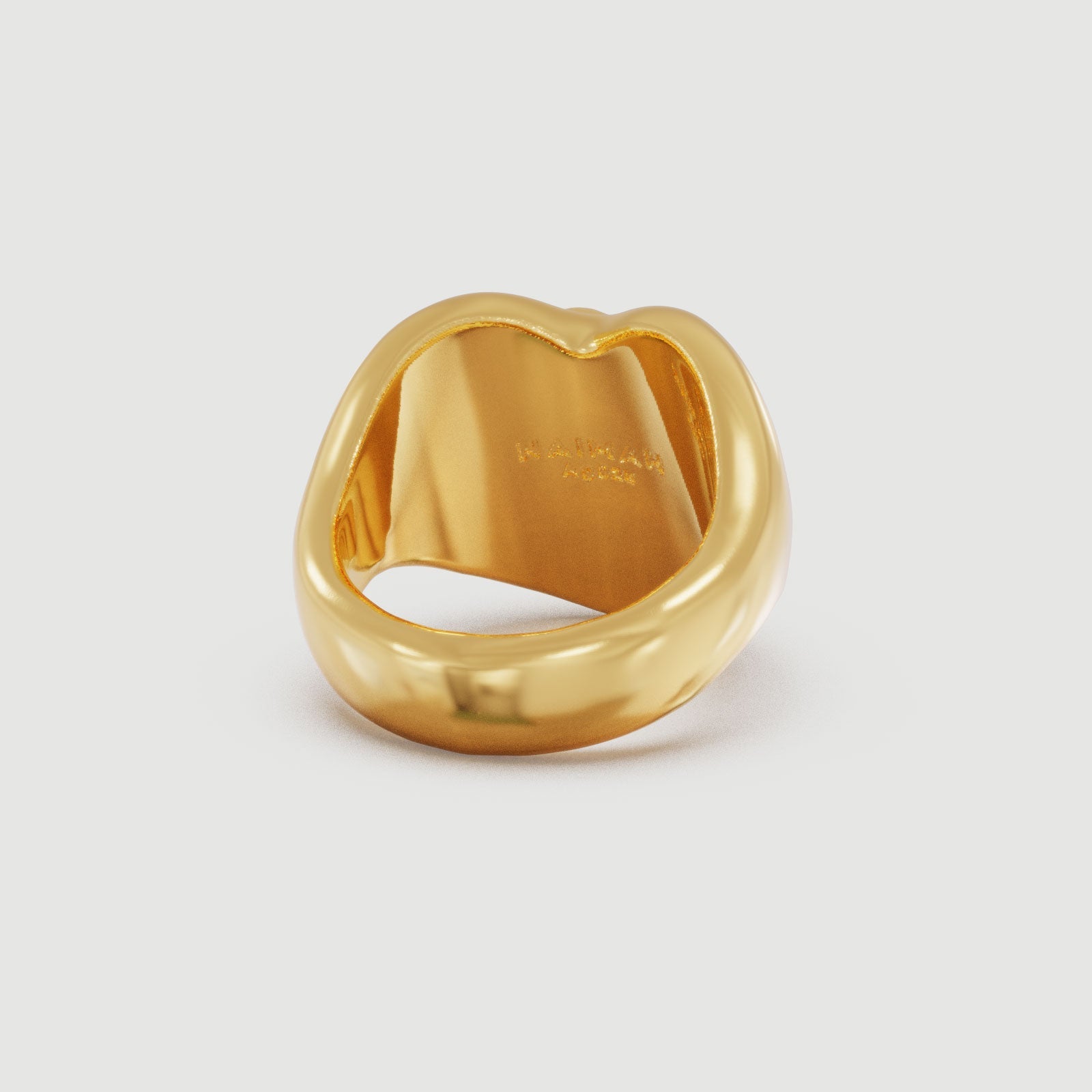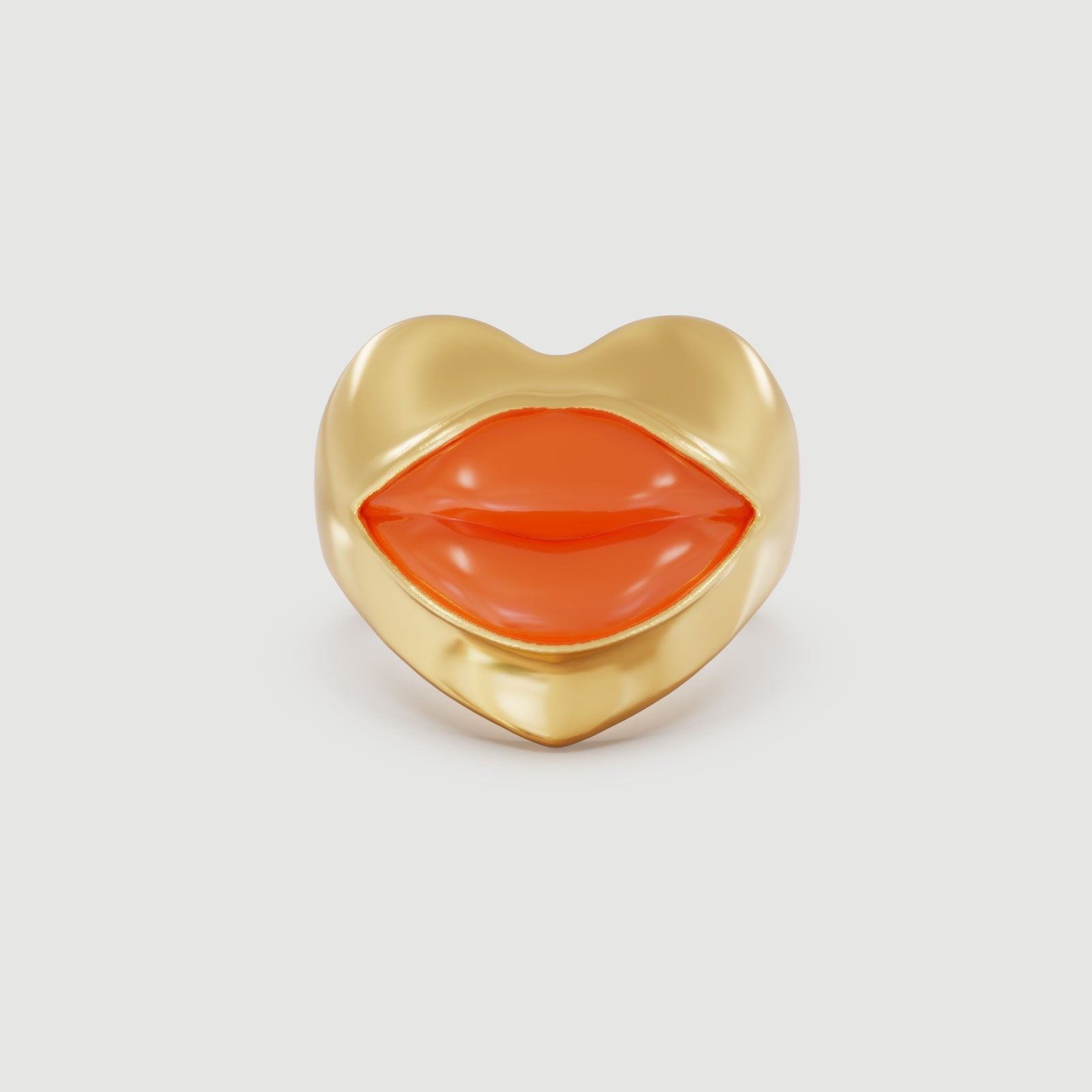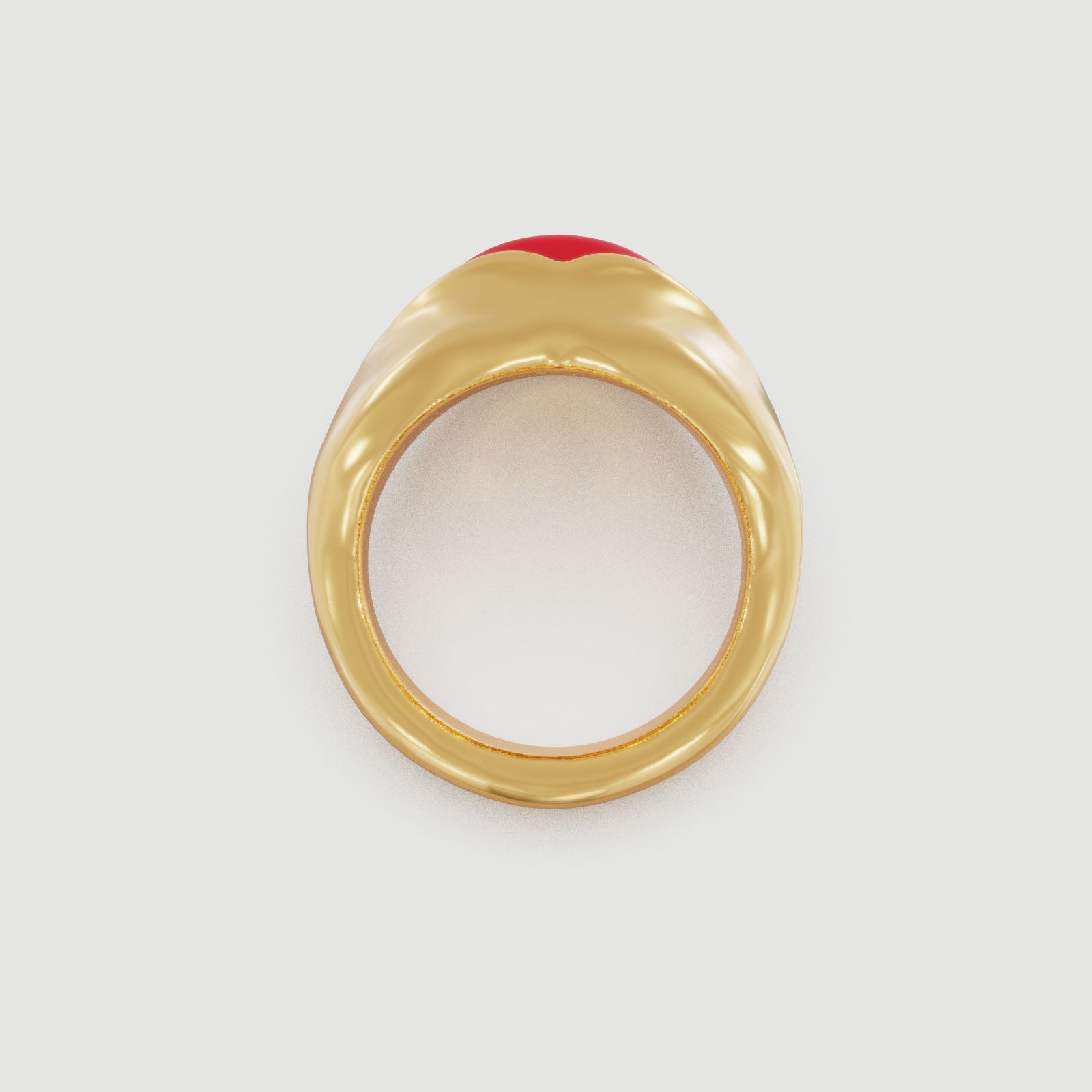 Introducing our captivating Heart-Shaped Love Lips Gold Vermeil ring with a bold redenamel Lip—a true masterpiece of pop-art and surrealism-inspired design.