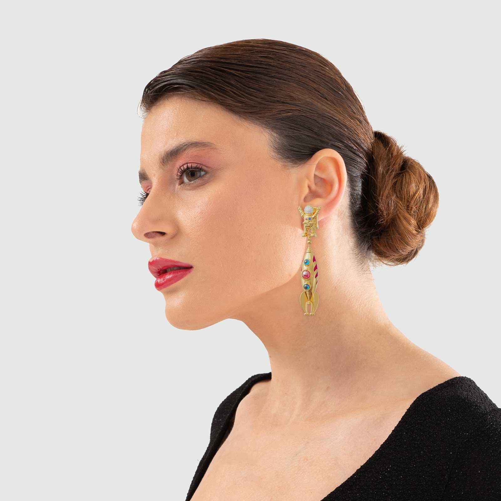 Introducing our celestial-inspired jewelry design, the 🚀 Major Tom Clip-On Earrings! Paying homage to the iconic persona of David Bowie 👨🎤 and his unforgettable space-themed songs like "Space Oddity," "Ashes to Ashes," "Hallo Spaceboy," and "Blackstar,"