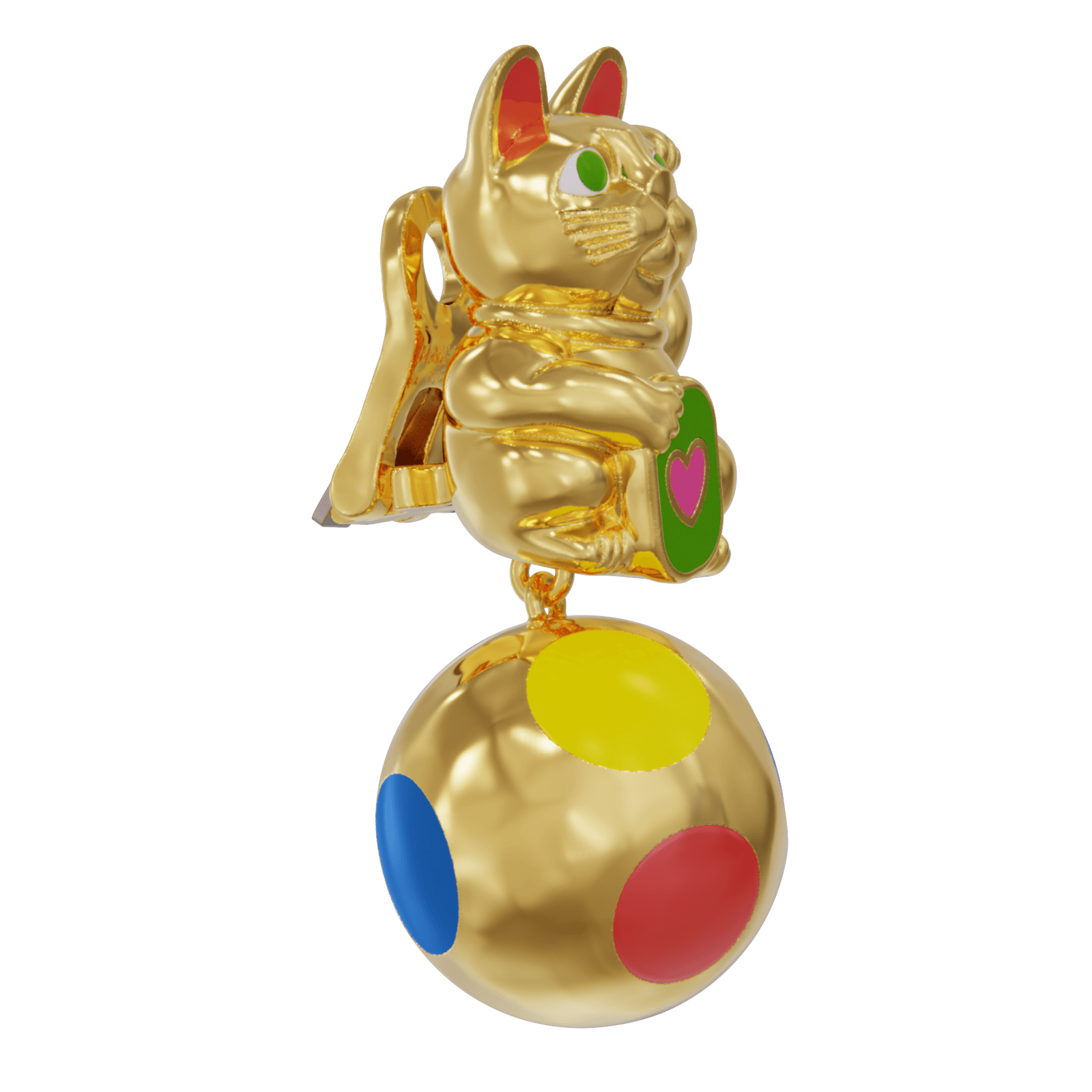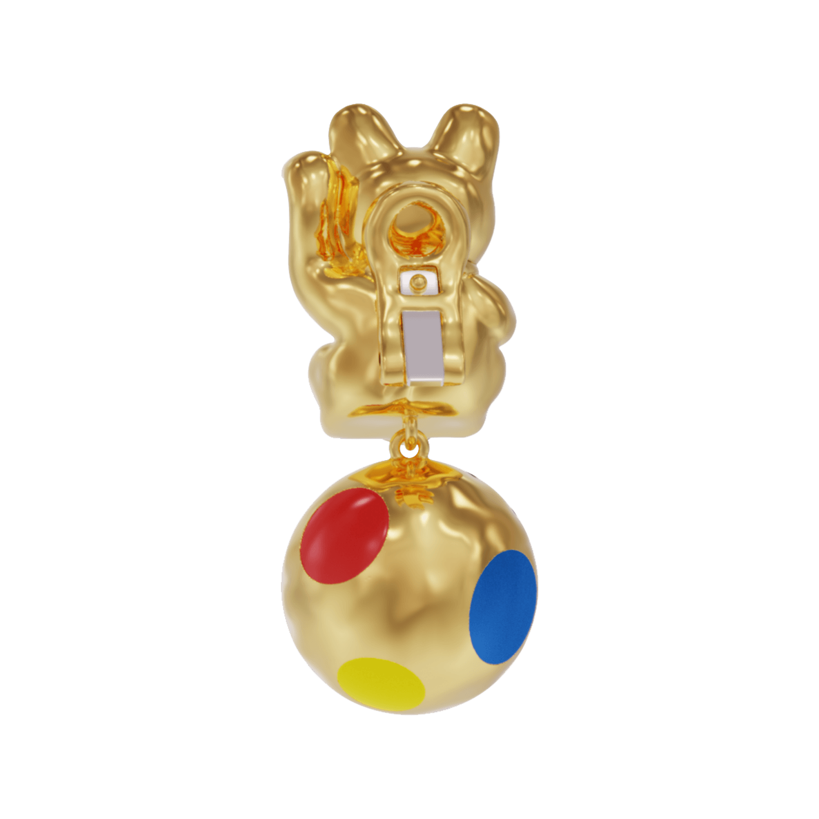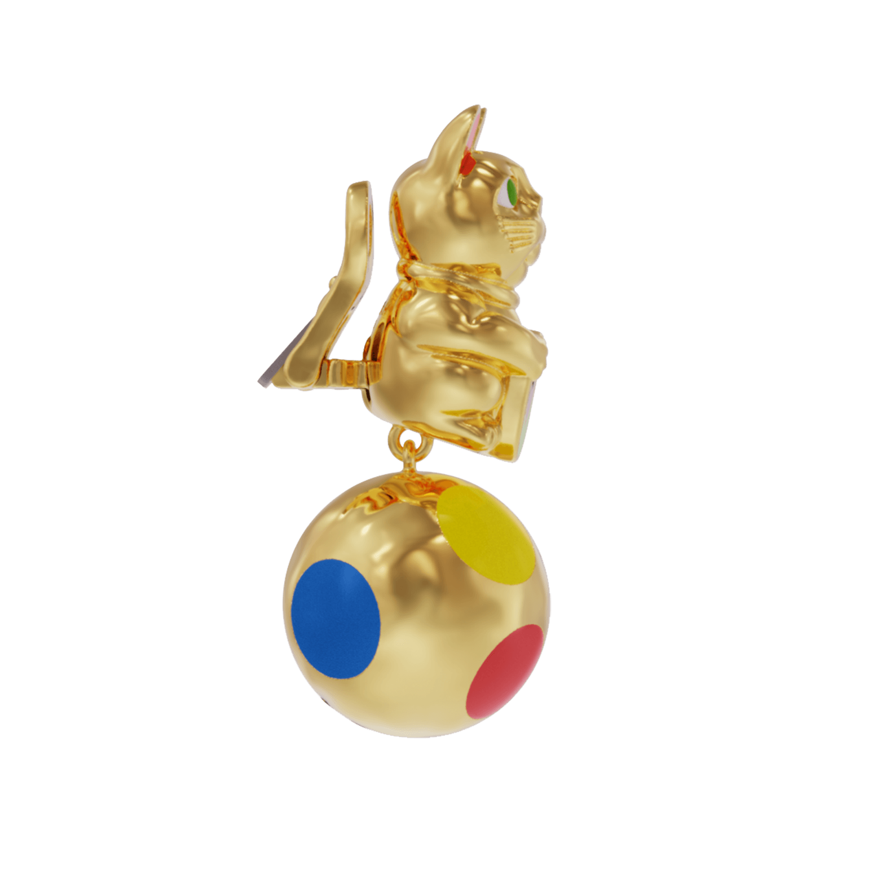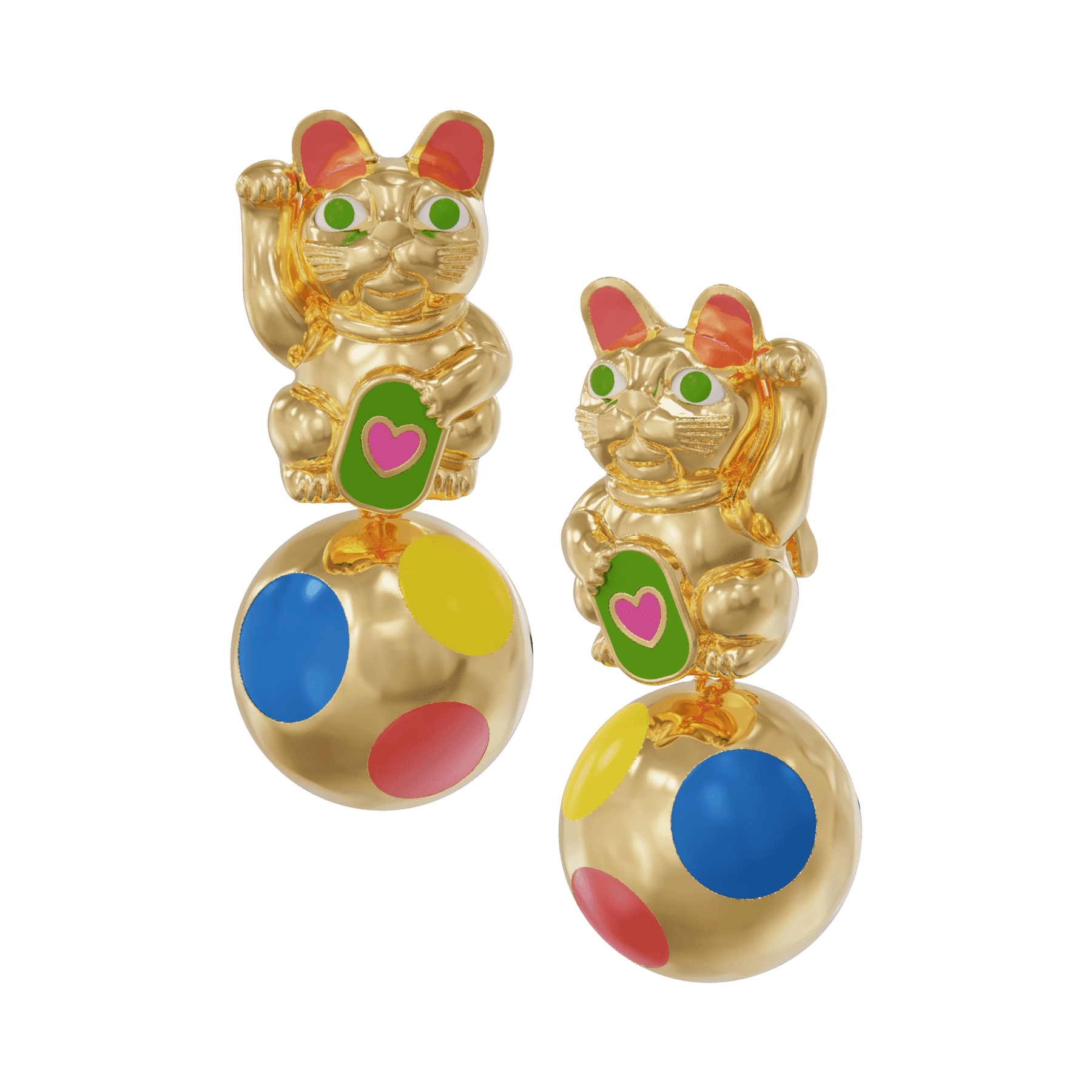 In a harmonious fusion of influences, the earrings feature a dangling gold ball adorned with vibrant enamel dots, a nod to the renowned Japanese artist Yayoi Kusama's distinctive style. 🔴 🔵🟡
