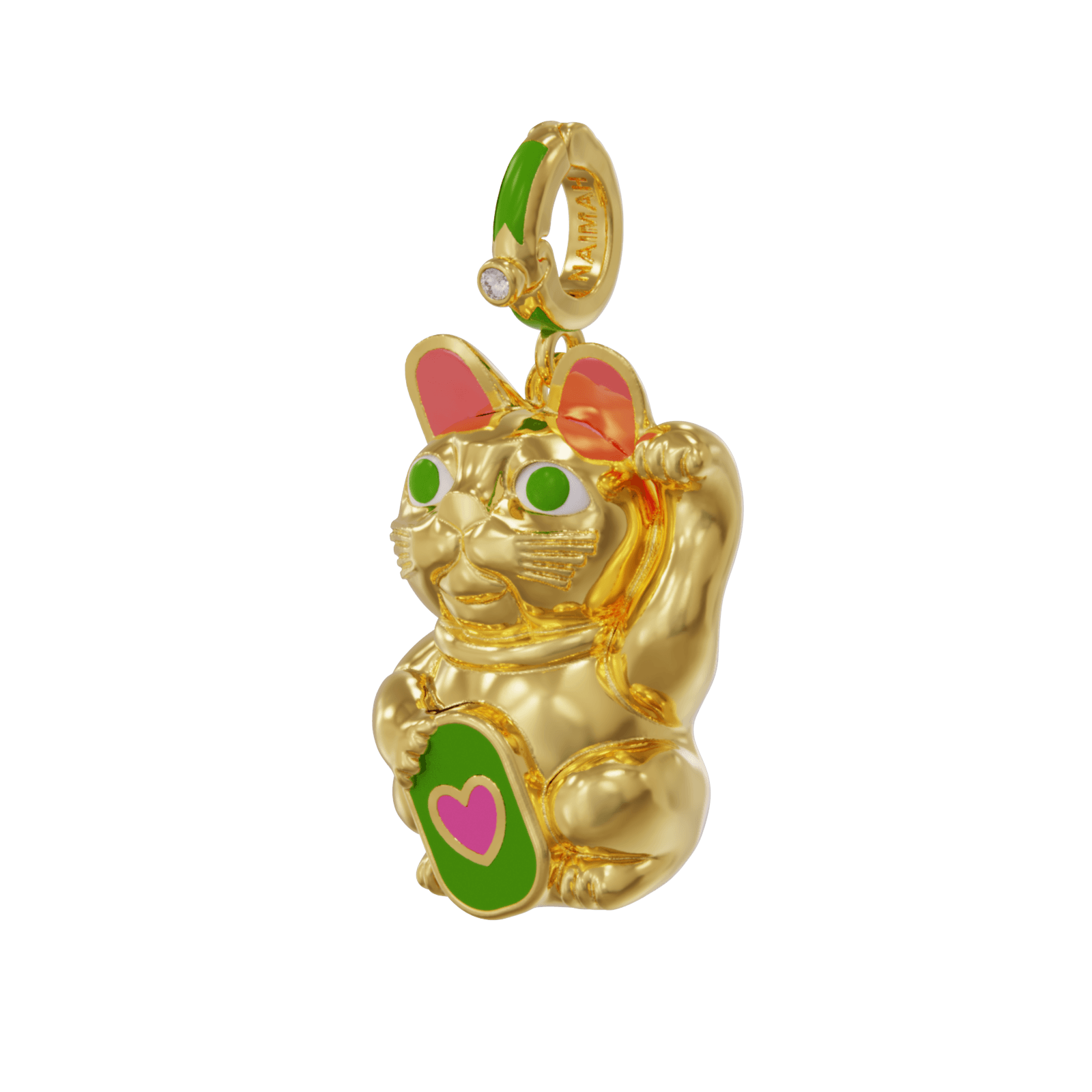 One of the unique features of the Enchanting Maneki Neko Pendant is its detachable bail, which allows you to easily attach it to any chain.