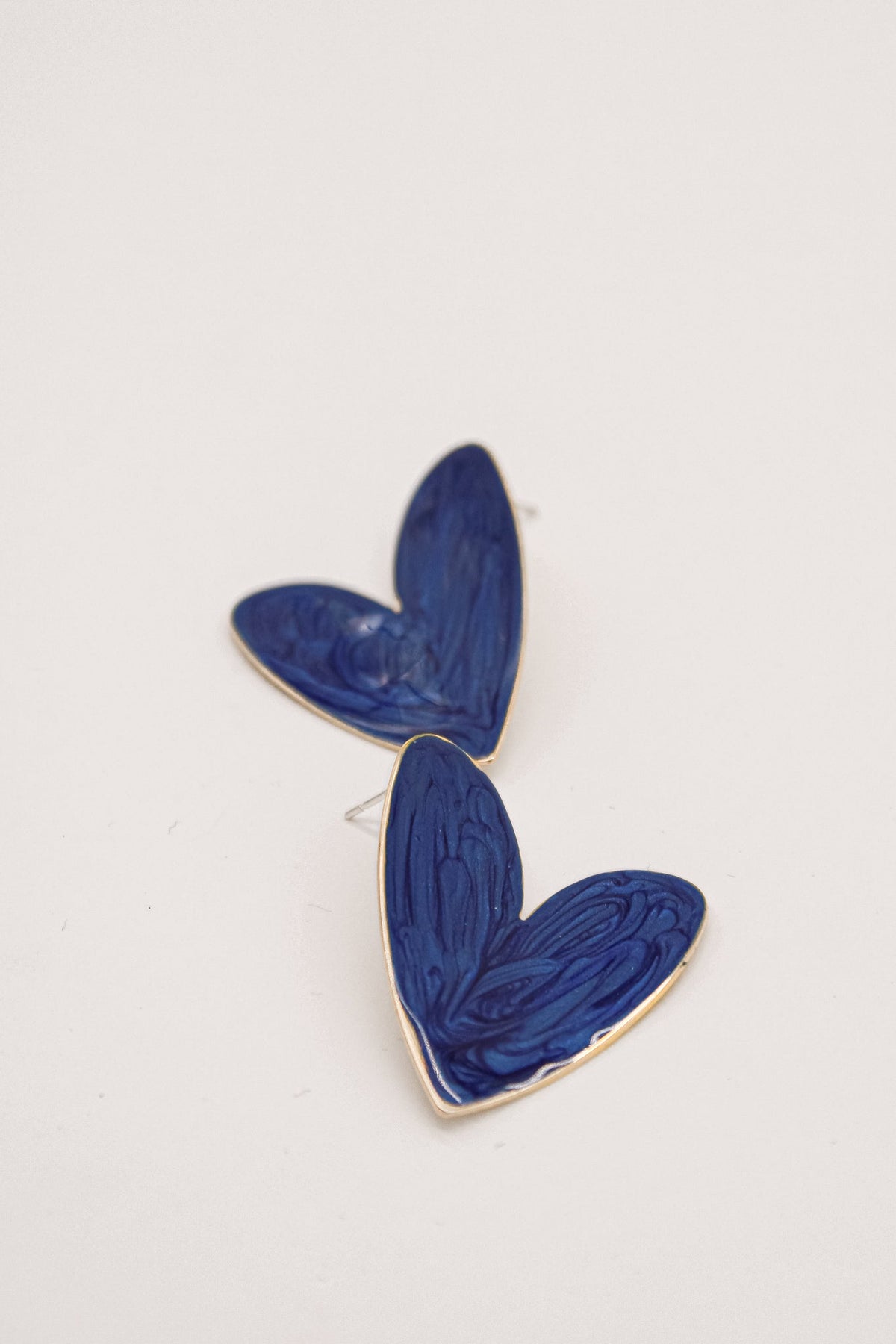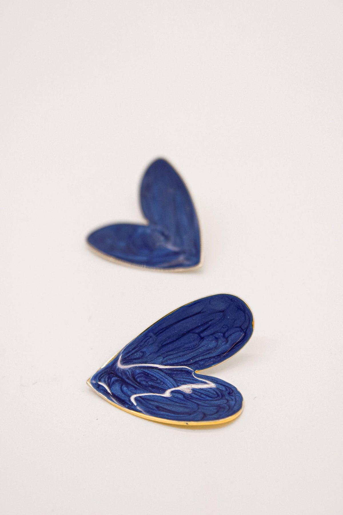 these statement earrings feature heart-shaped recycled resin designs in a bold blue shade with an 18K gold-plated base. The lightweight feel and playful style make them perfect for both everyday wear and special occasions. Each piece is carefully crafted with sustainability in mind, offering a unique, eco-friendly addition to your collection.