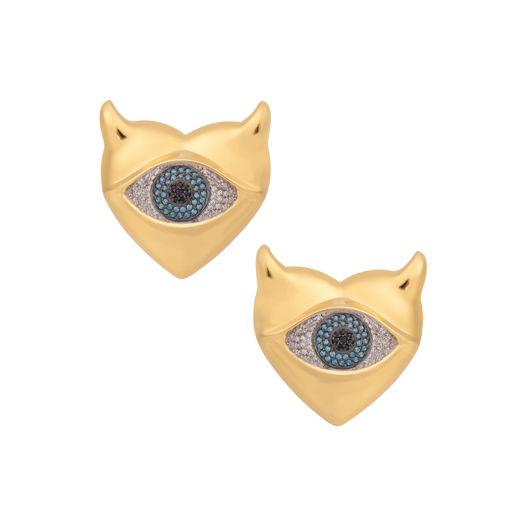 Introducing "Vivienne Earrings" – a testament to daring elegance that pays homage to the legendary designer Vivienne Westwood. These exceptional earrings blend timeless charm with a dash of rebellion, featuring a striking evil eye at their heart and a nod to Vivienne's iconic gold horned tiara.