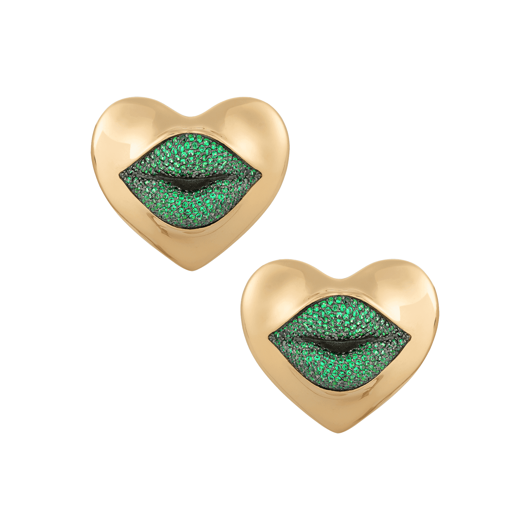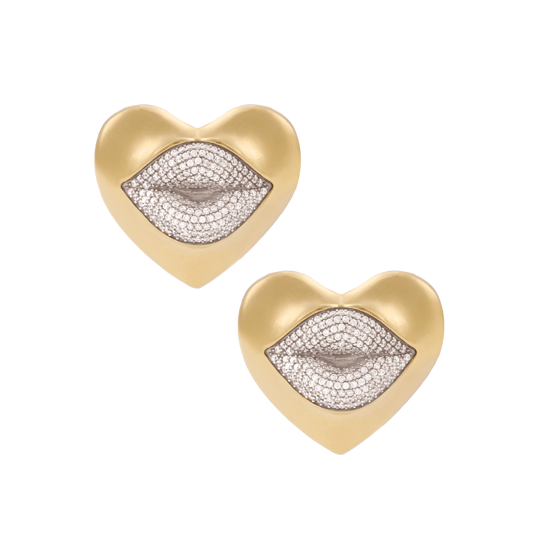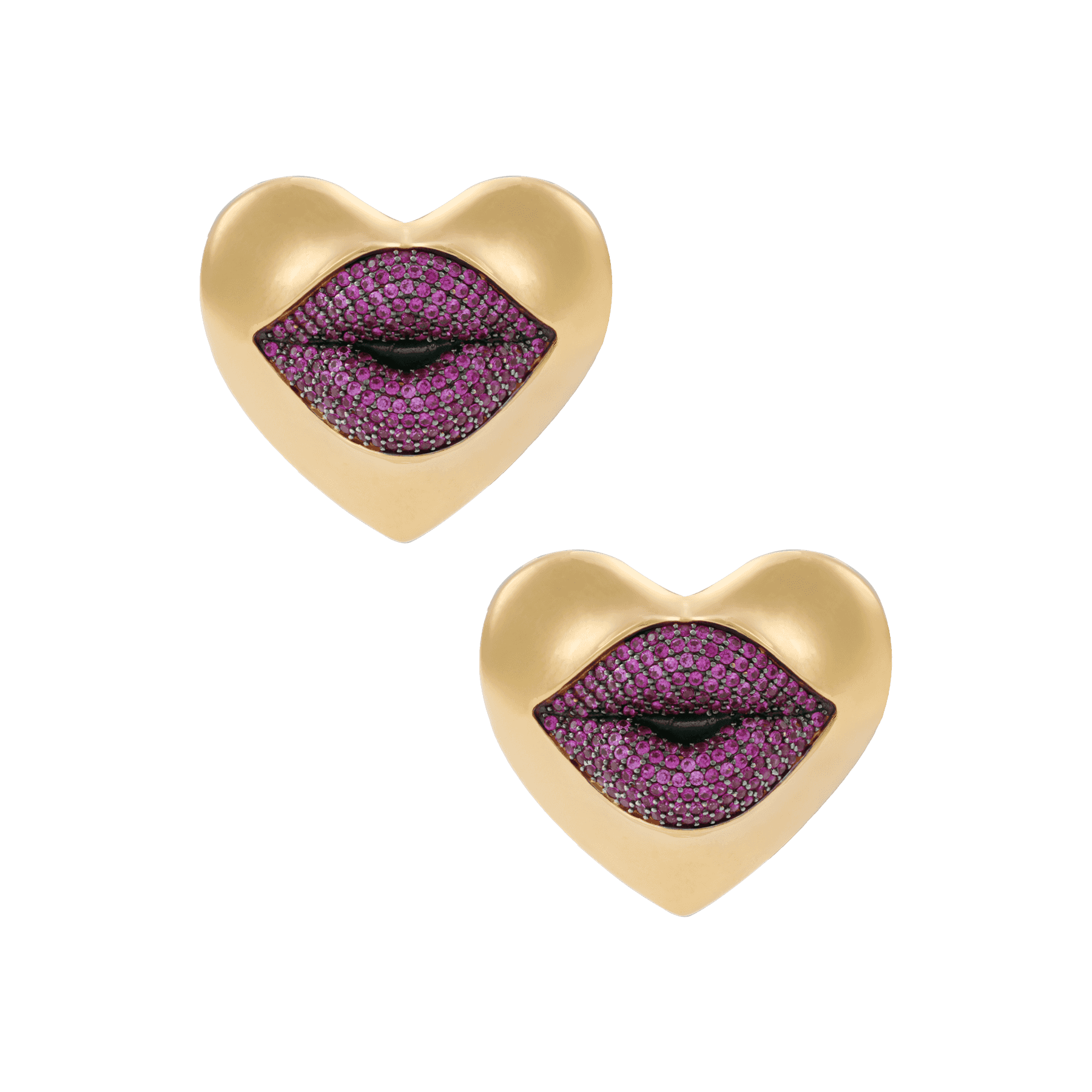 Love lips earrings feature a unique design that blends classic elegance with modern pop art influences and a touch of surrealism. The shimmering gold vermeil heart is beautifully complemented by a bold pair of lips, creating a dreamlike and otherworldly effect.