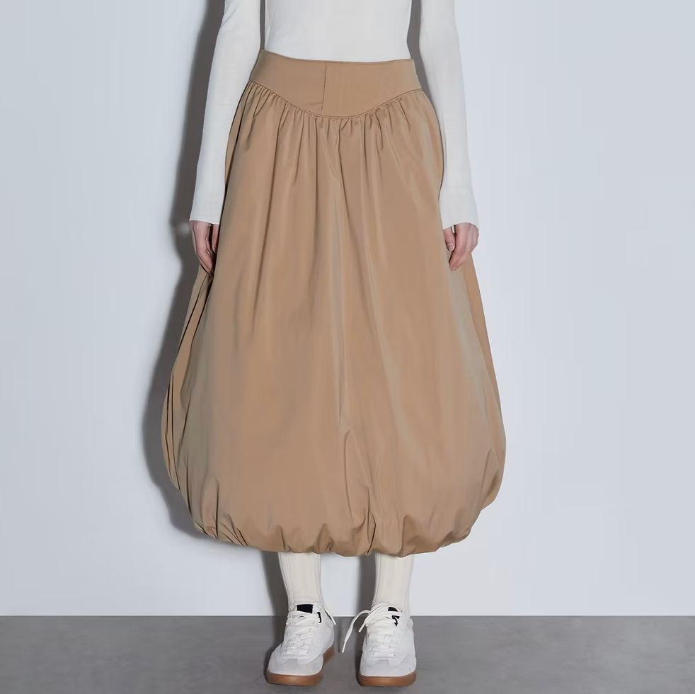 Balloon puffy down skirt with vintage waist design detail with a zip on the side of the waist