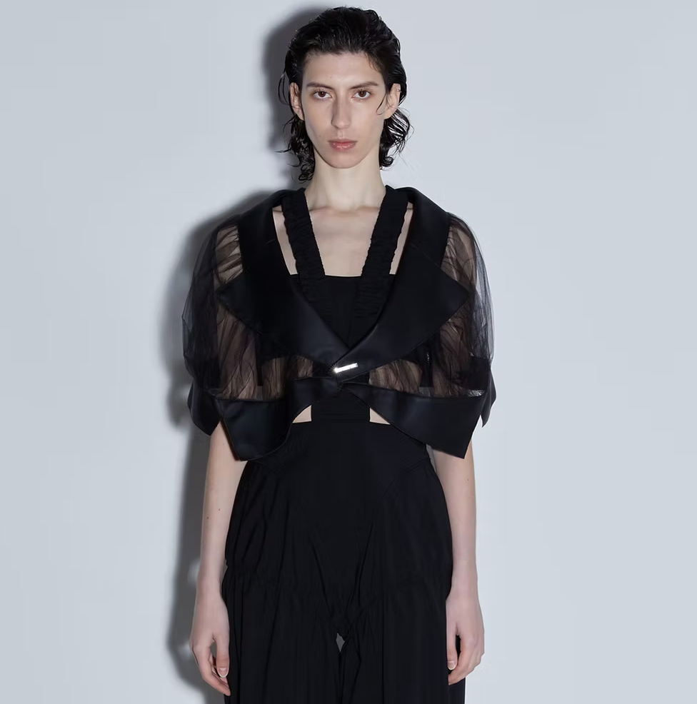 Gender-free semi-transparent mesh cape with lapels