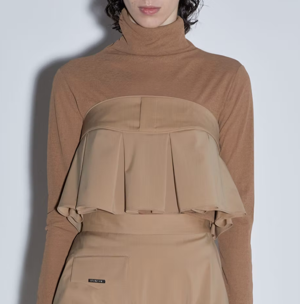 Gender-free pleated bra top with zip on the side