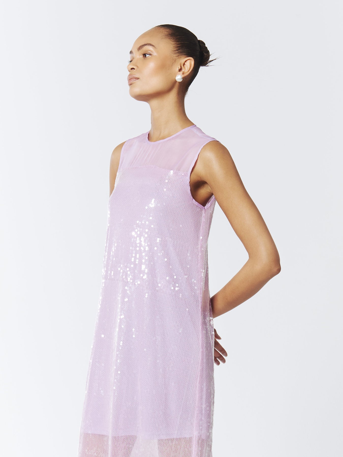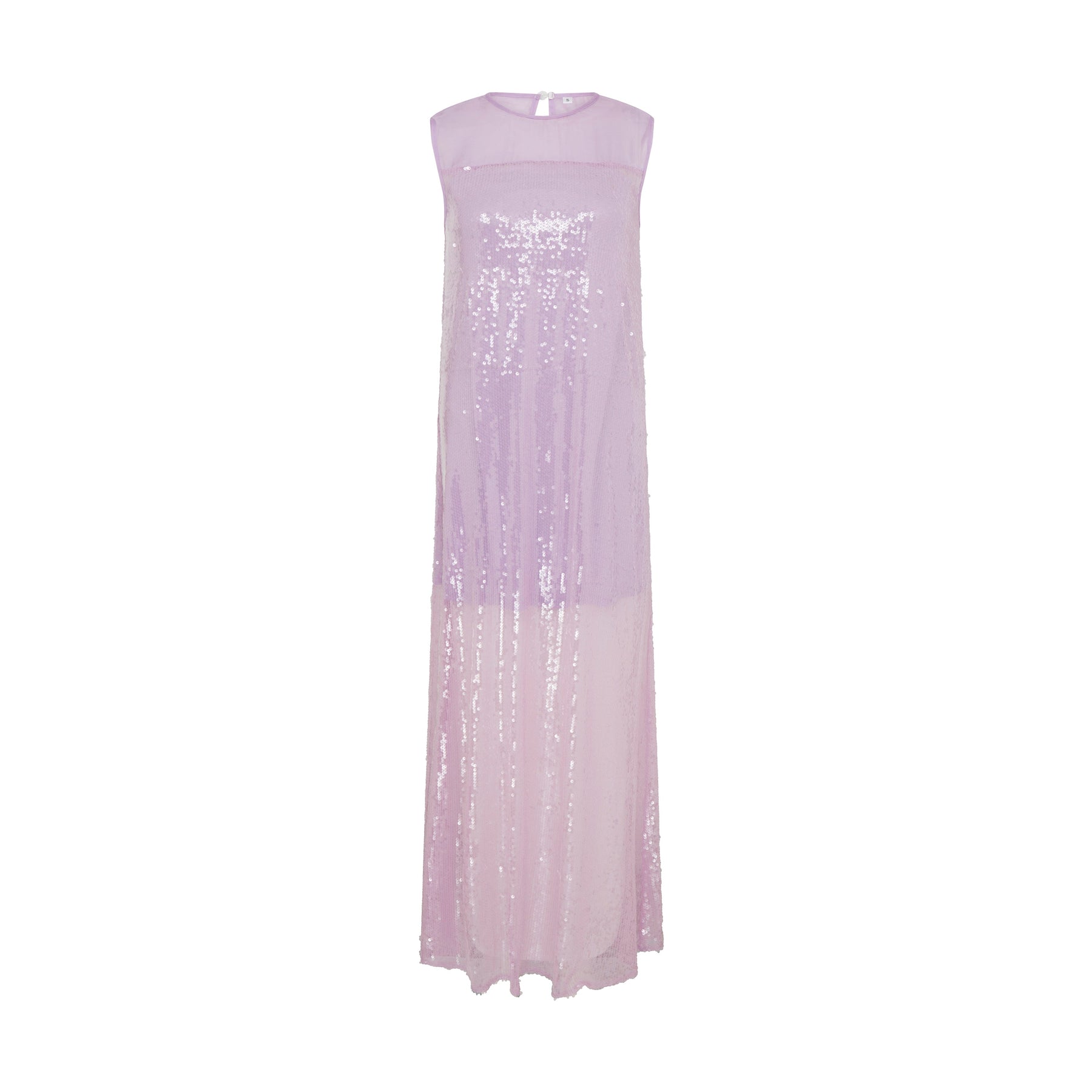 An ethereal design and flattering silhouette, this purple sequin maxi dress gives the ultimate fantasy aesthetic. Crafted from sequined tulle with a playful sheer effect, it is a show-stopping choice for a night out that is sure to leave a lasting impression.