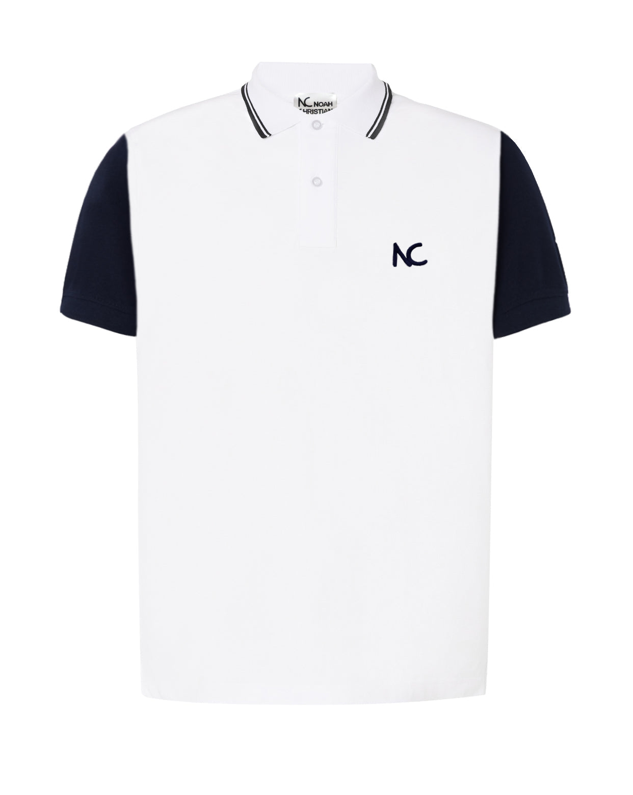 A timeless essential with a refined edge. The NC Classic Fit Contrast Polo features a crisp white body, contrasted by navy blue short sleeves and a ribbed polo collar. The embroidered NC logo in navy adds a subtle yet distinctive touch of identity.