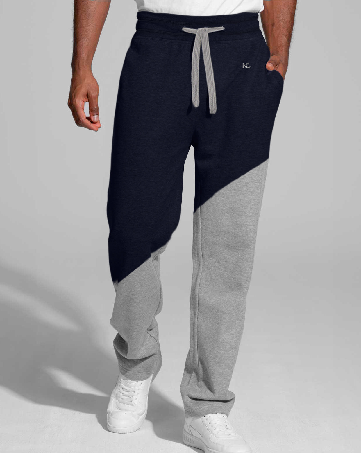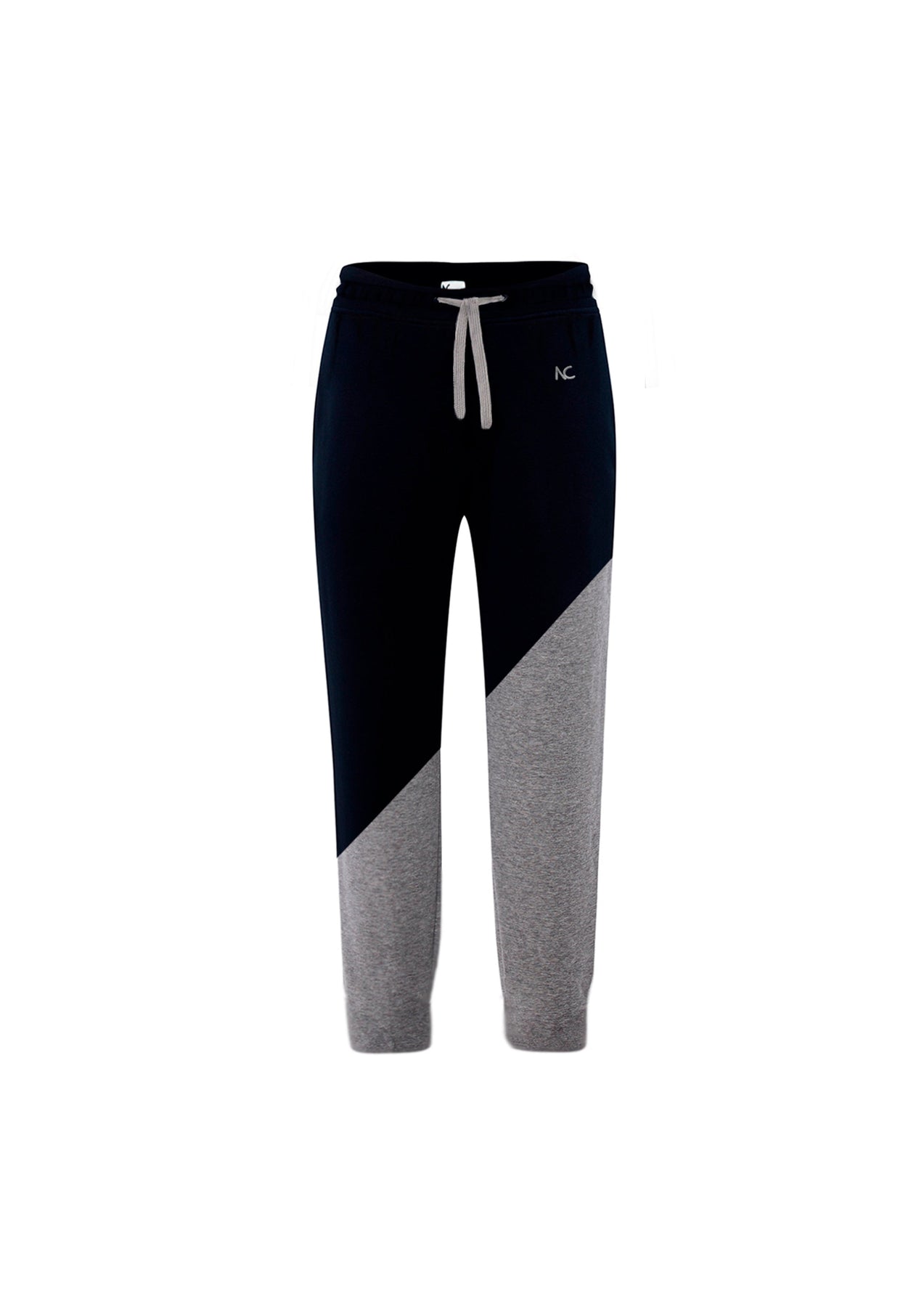 NC contrast sweatpants in navy blue and melange grey crafted from cotton & polyester featuring a pocket on each side and a relaxed fit. Elastic waistband and contrast patch pocket on back. The contrast lace and the NC logo in grey are enhancing the attention to detail in this new comfy designer piece.