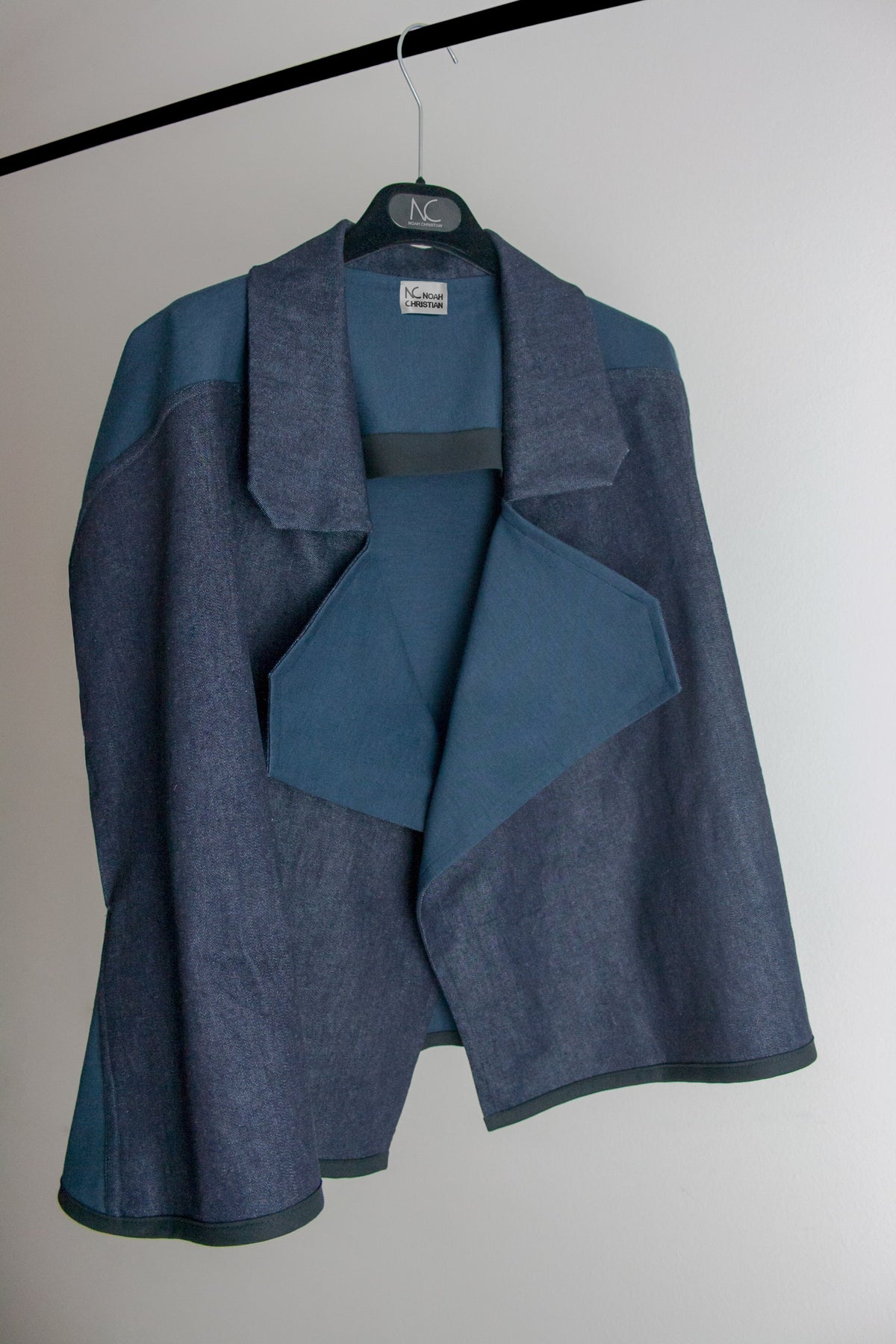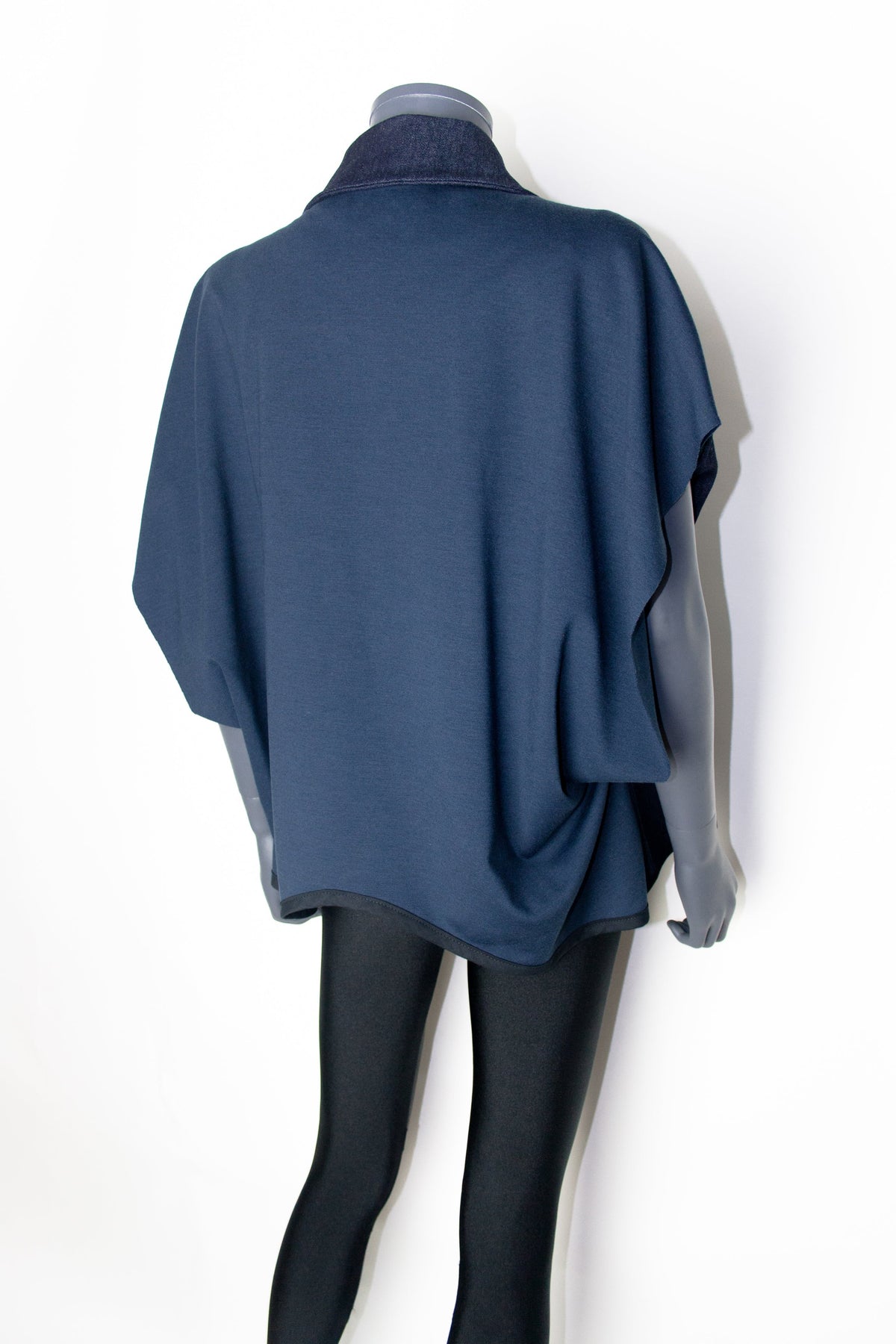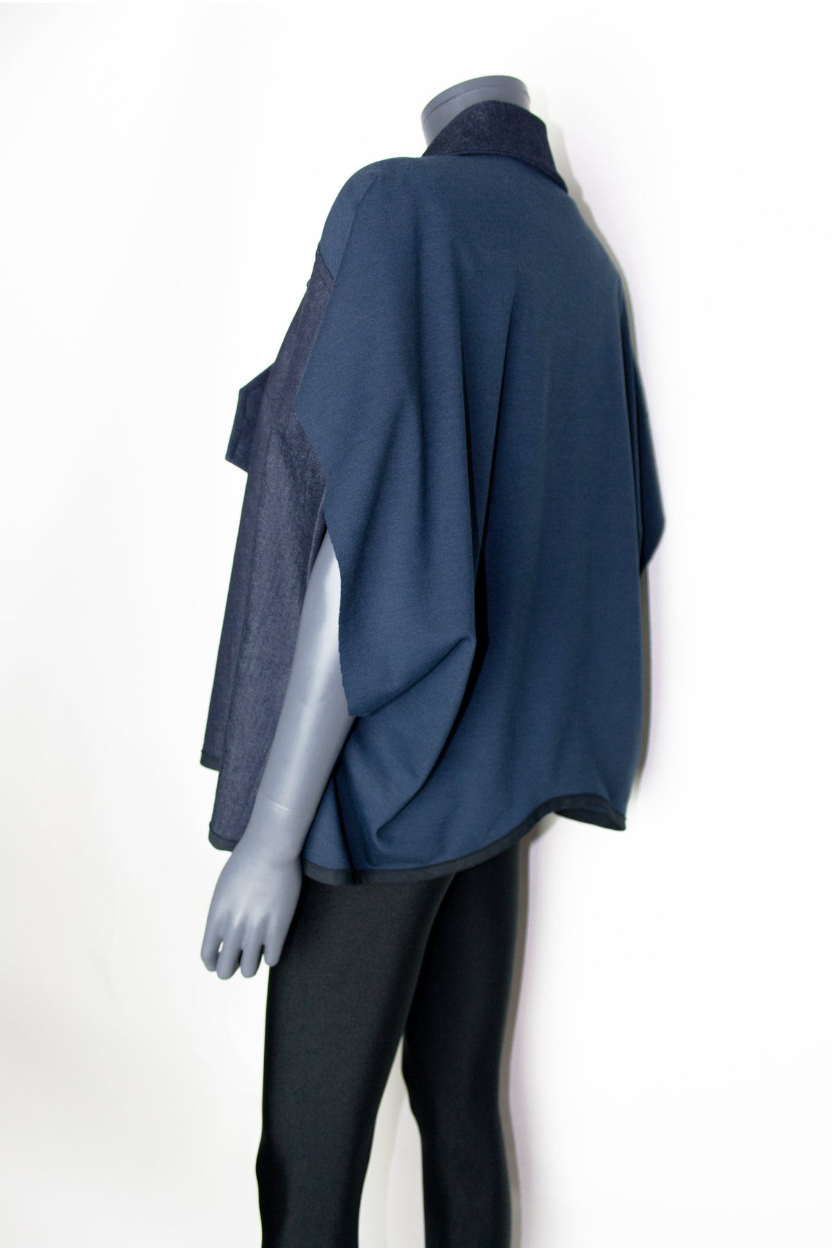 This sleeveless blazer is a different and more relaxed version of the Sensu Blazer with sleeves. Sensu "扇子" means "hand fan" in Japanese, it is an elegant and oversized garment from NC's Dark-Line collection. Crafted in denim and knit, it has a tailored denim collar and a single-breasted press-stud closure. The navy blue Ponte di Roma knit delicately highlights the back and further defines the style combining it with a night blue denim front. Sensu is a distinctive designer piece inspired in Japanese culture.
