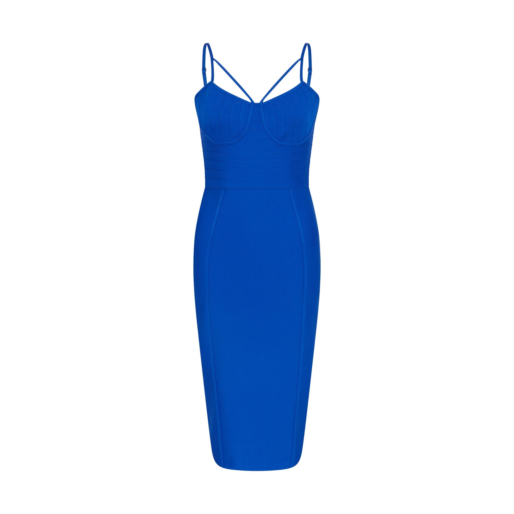 Highlights of Split Strap Bustier Bandage Midi Dress in Cobalt Blue