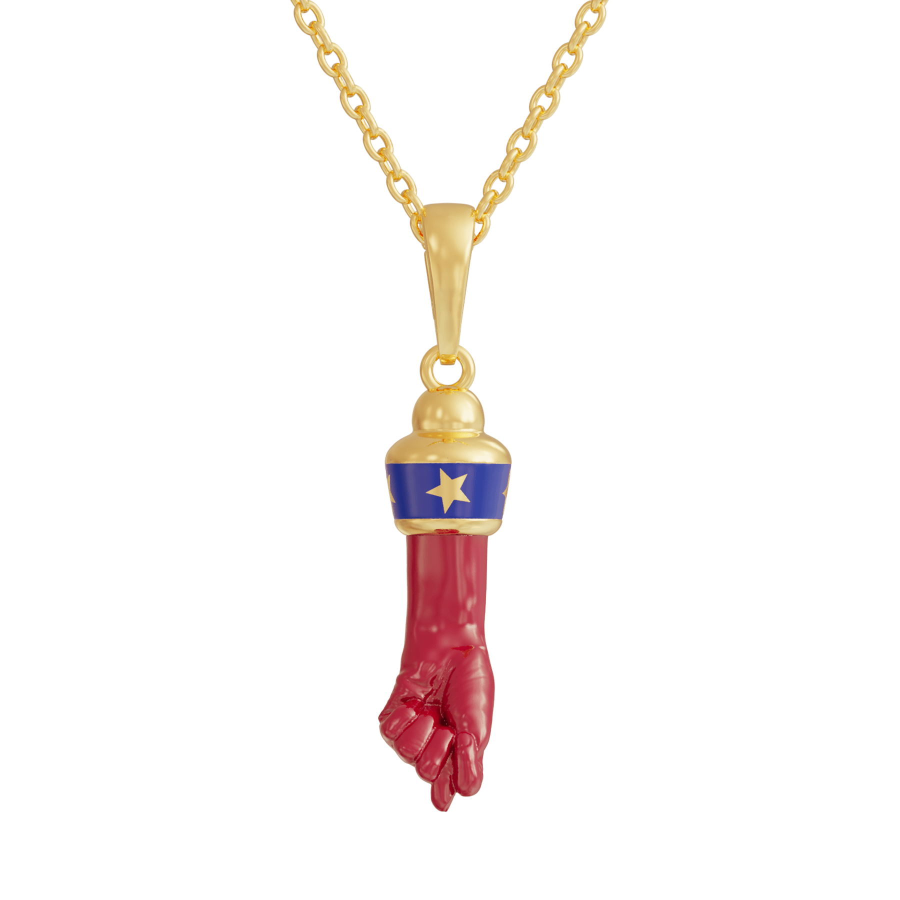 Properly called the "mano fico," this is an Italian symbol going back centuries. It is said to ward off the "evil eye" and bring protection to the wearer. Basically, the gesture is supposed to be so offensive that it scares off the "evil."
