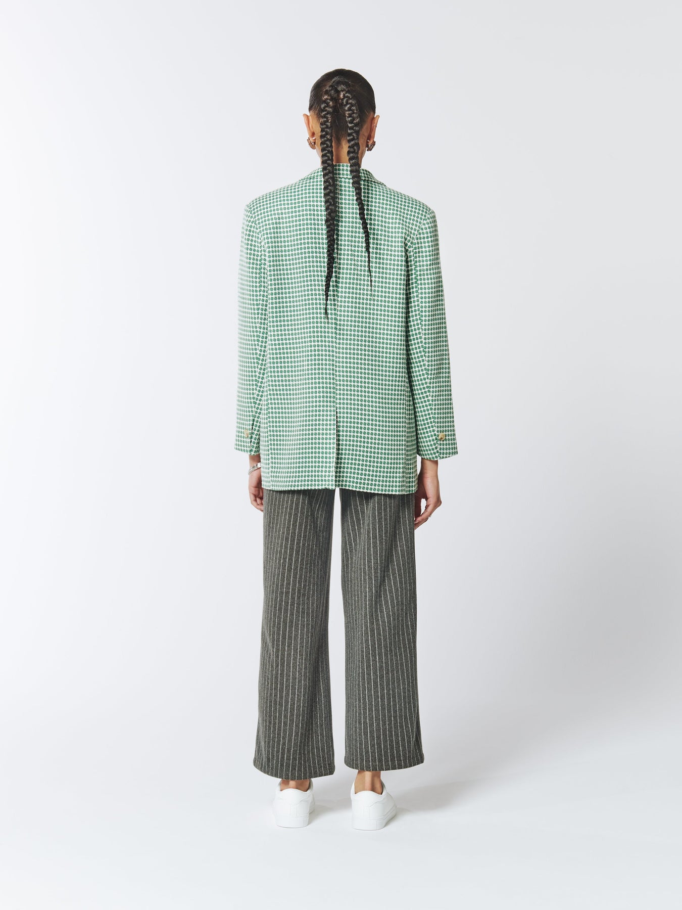 Highlights of Single-breasted Check Blazer in Cactus Green