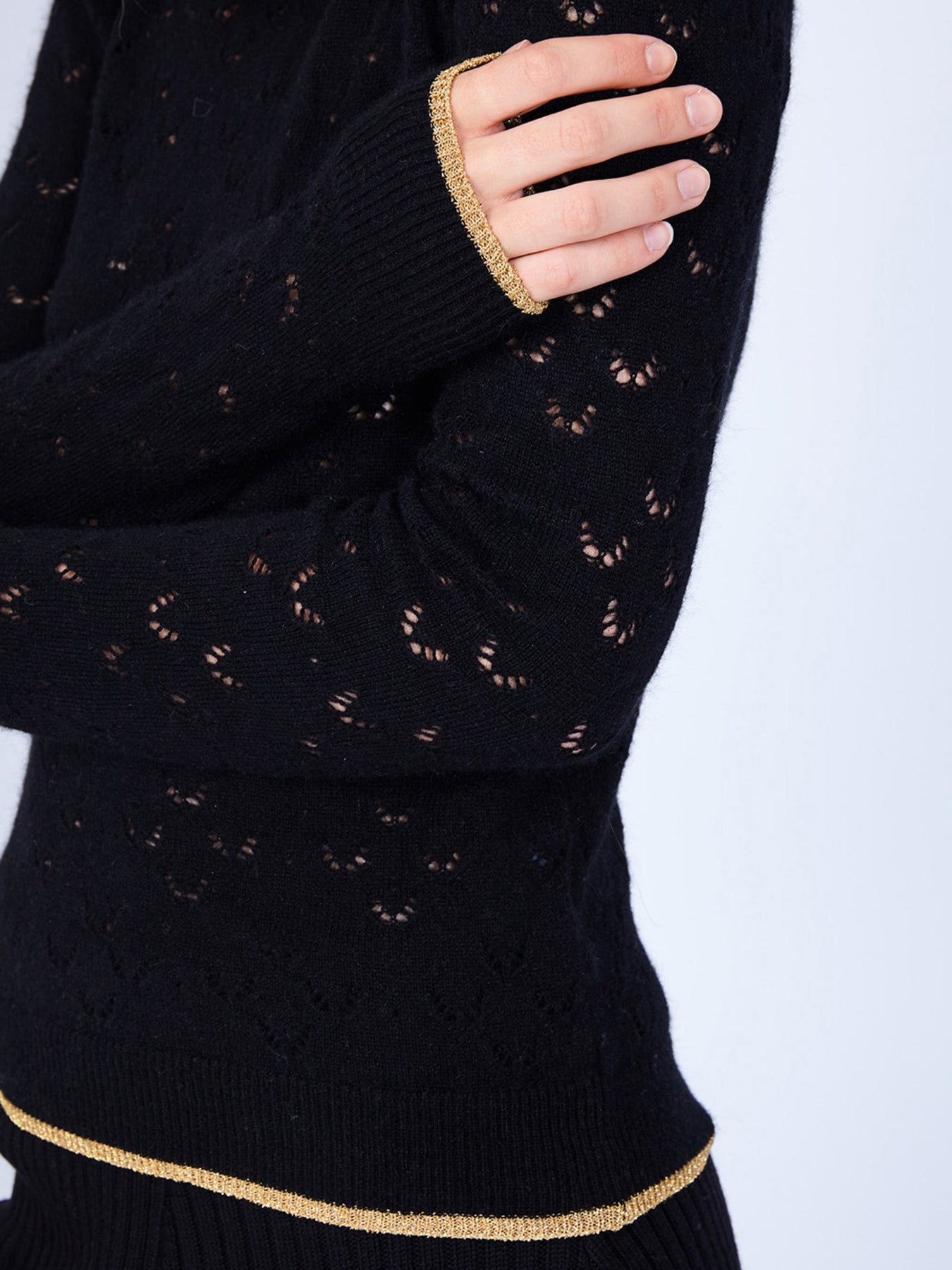 Openwork sweater with funnel collar and puff sleeves, made in France