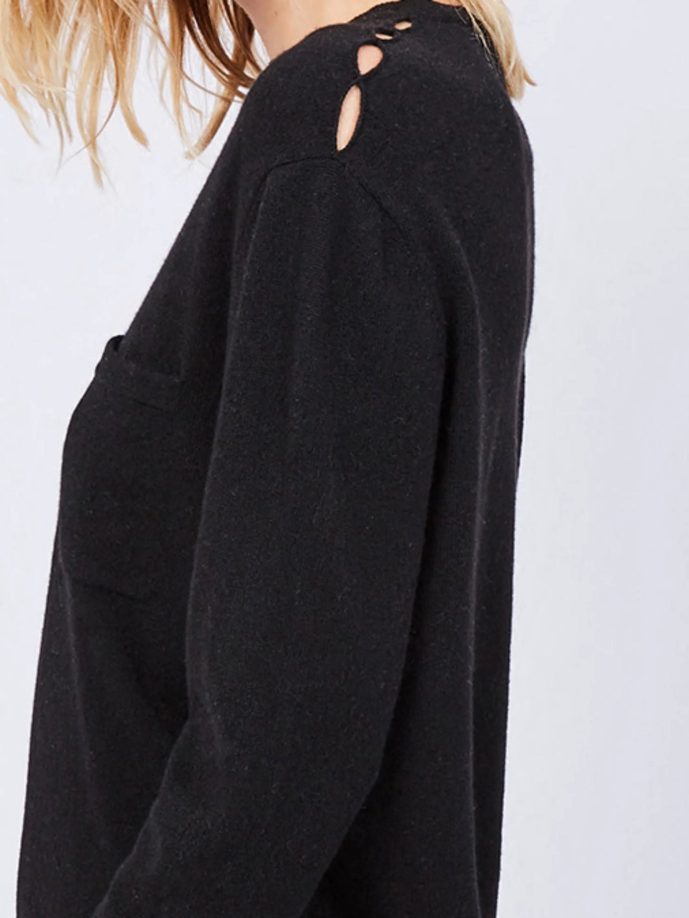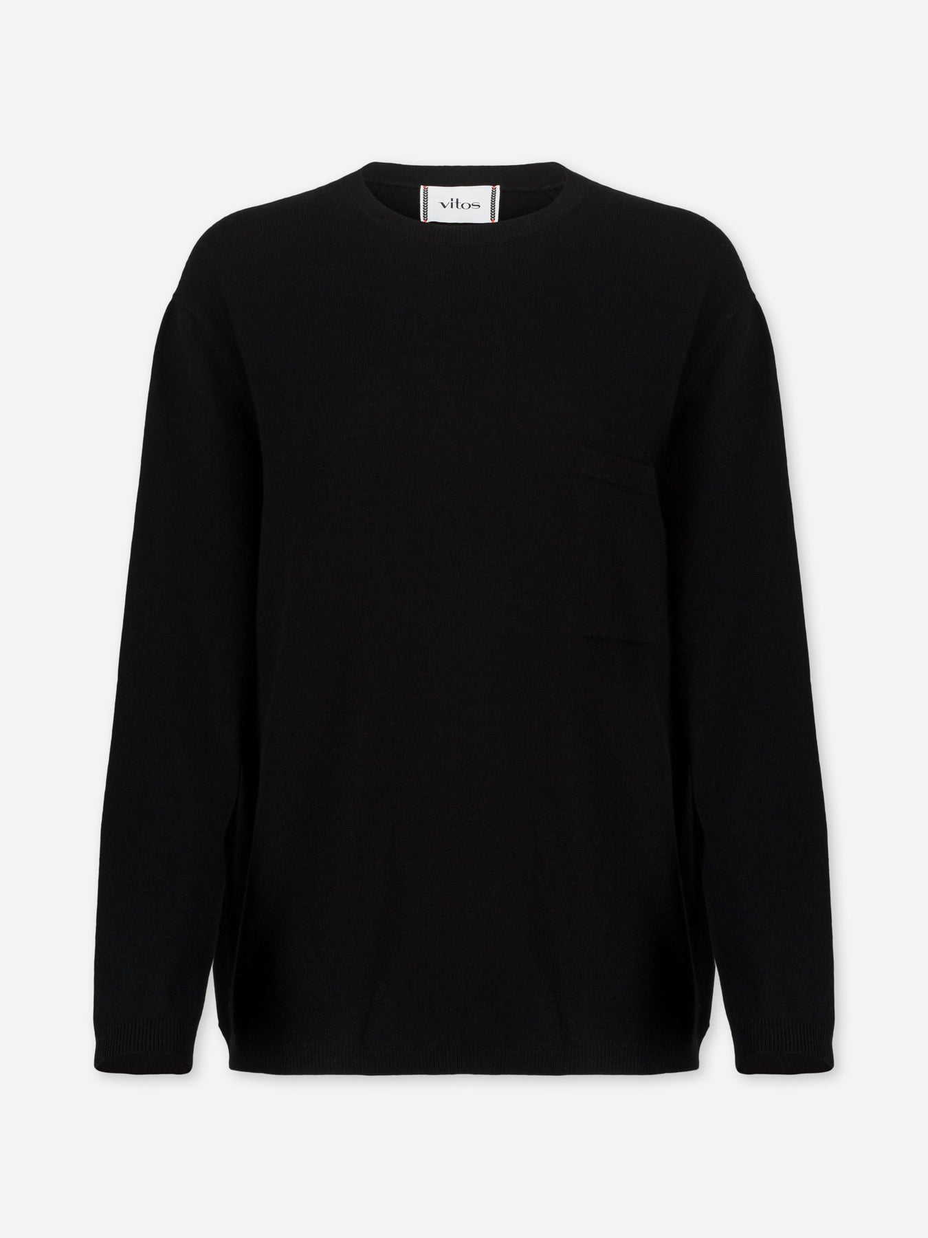 Oversize crewneck sweater crafted in Italy from an exceptionally pure cashmere. Refined details for a feminine touch with ribbed neckline, cuffs and hem.