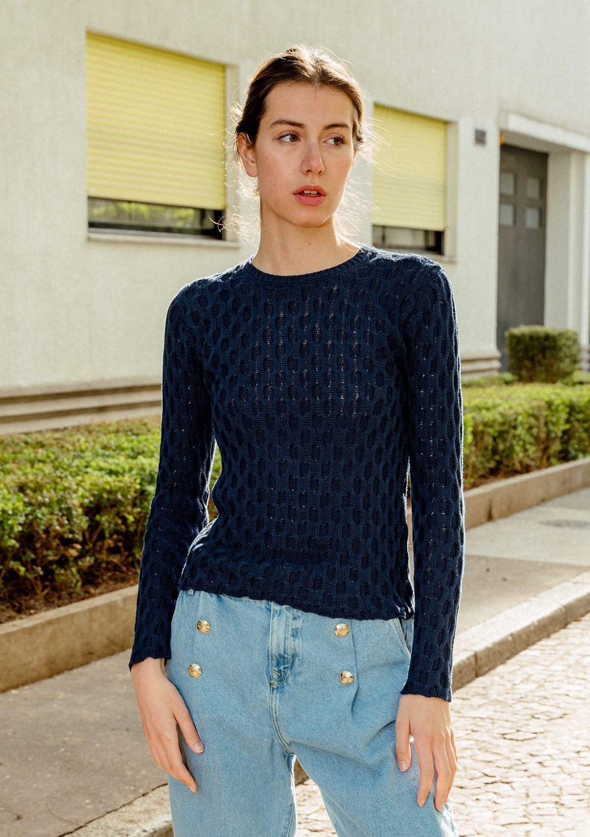This knitted extra lightweight sweater is made from pure and soft African cotton: naturally biodegradable and extremely durable. A wink to timelessness.