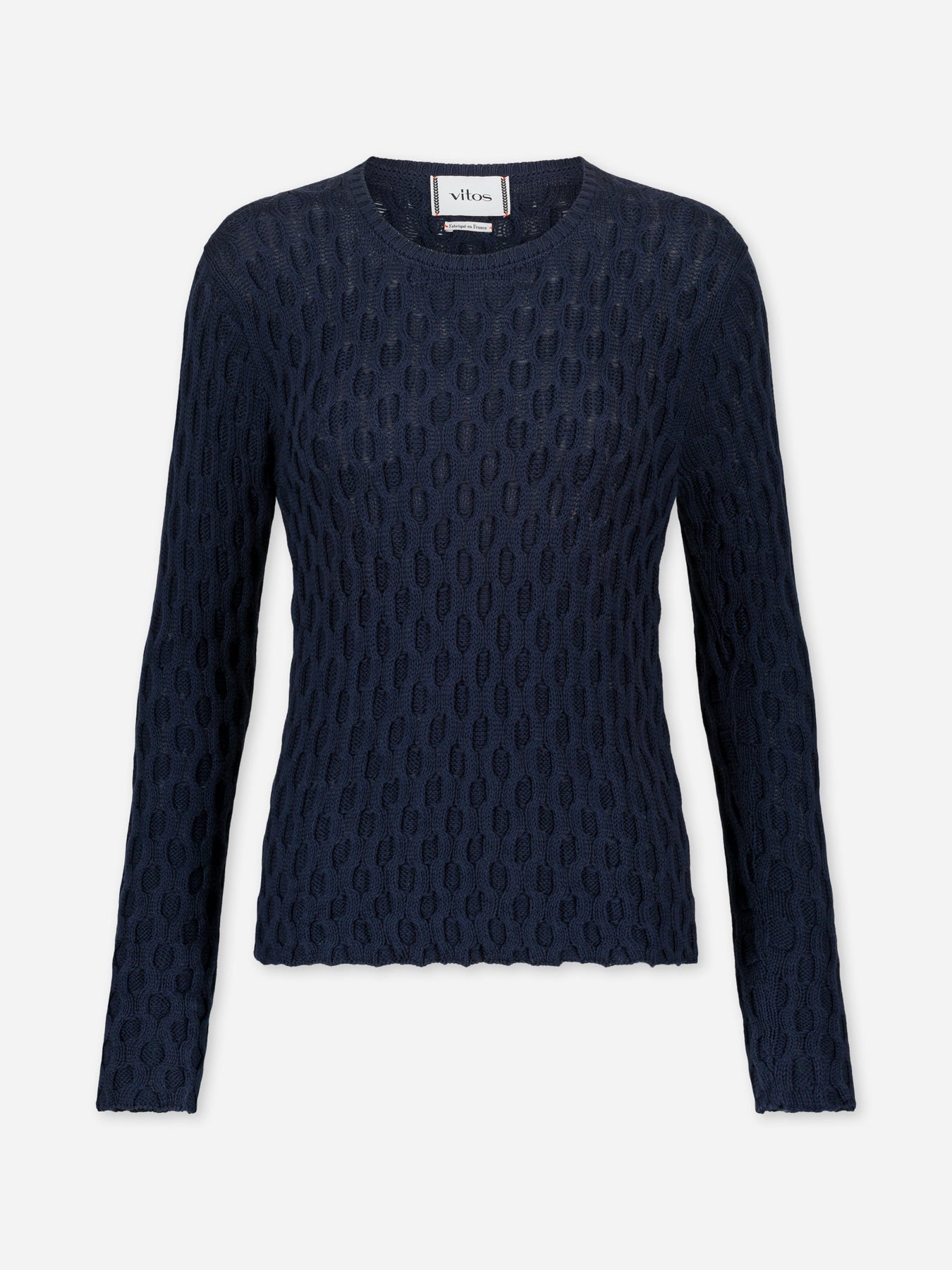 Embrace our classic cable knit sweater featuring the brand's 70’s knitting pattern. Exposed seam and wavy finish, this sweater is made in France.