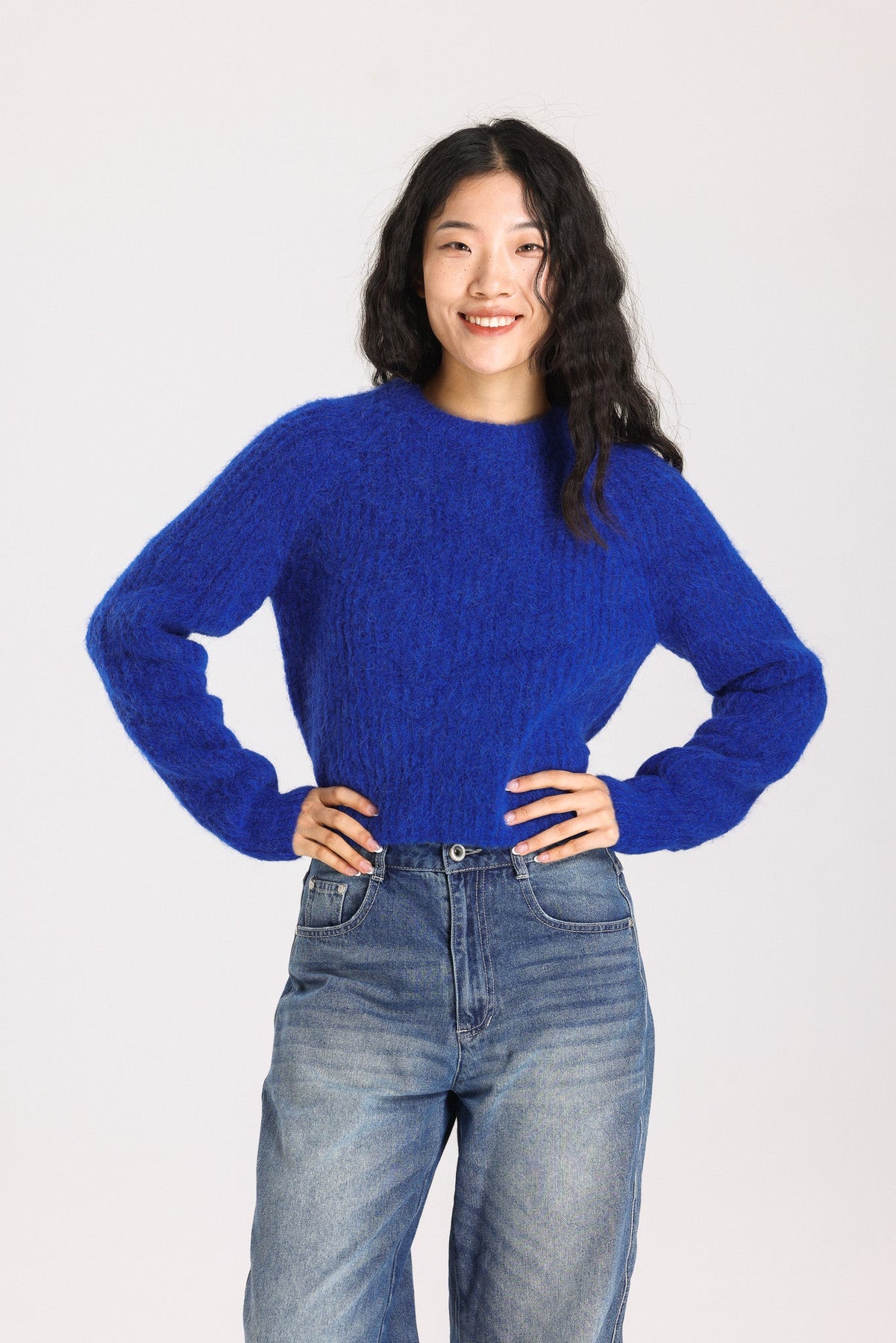 This elegant Royal Blue sweater features a relaxed fit with a classic round neckline, adding a pop of vibrant colour to your wardrobe.