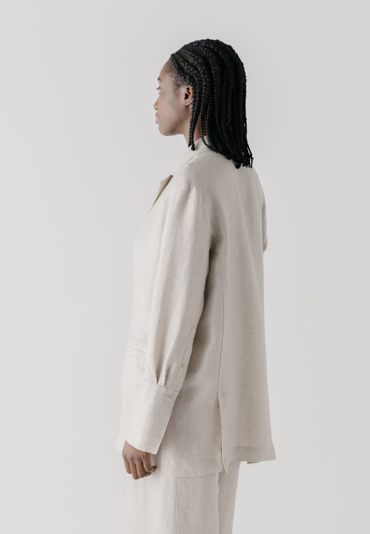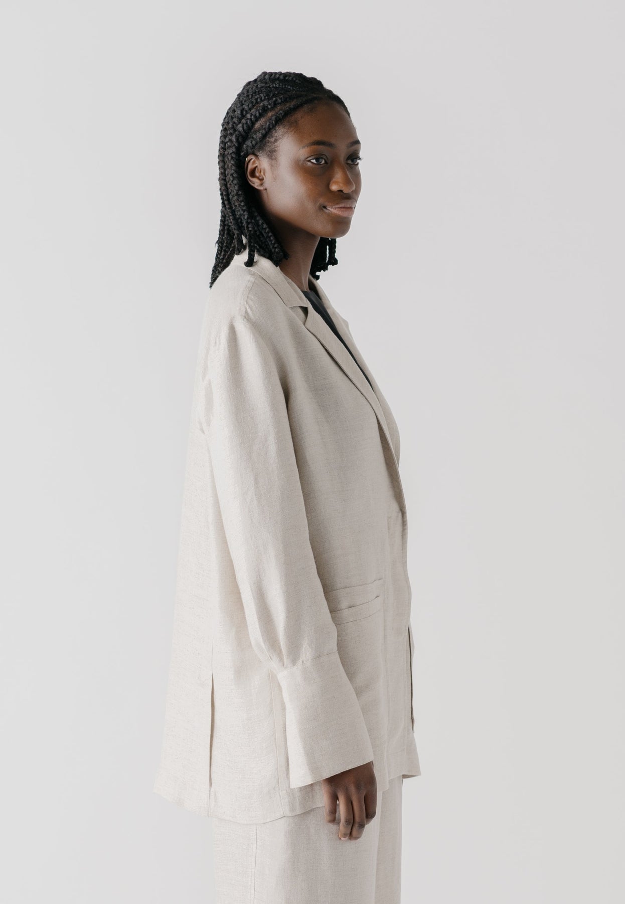 Unlined style for extra lightnessClassic lapel collar Concealed buttons for a clean lookSpacious patch pockets Shirt-like sleeves for extra comfortVents at the back for ease of movementDecorative and durable top stitching details Eco-friendly buttonsSpecial herringbone weave surface
