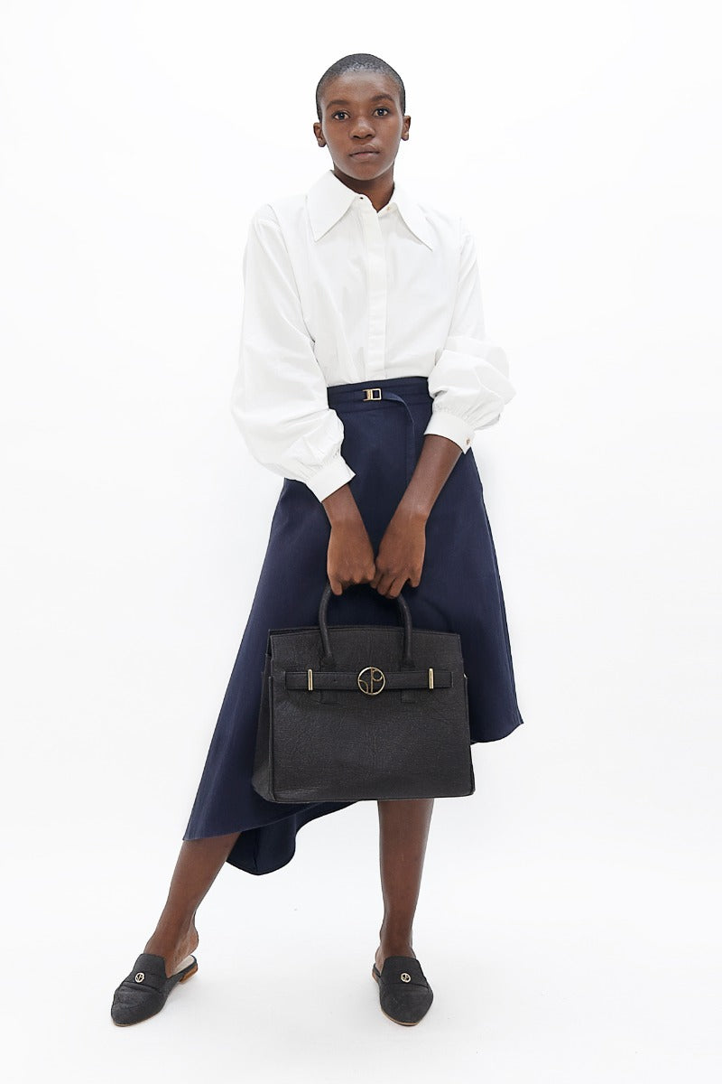 Details - Wide collar- Gathered sleeves- Buttoned cuff- Long-sleeves- Relaxed straight fit