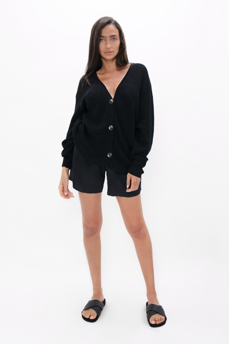 Details - Loose fit cardigan- 4 buttons opening- Length of slightly below the hips- Partly hand-knitted- Designed to envelop your body in a cocoon feel