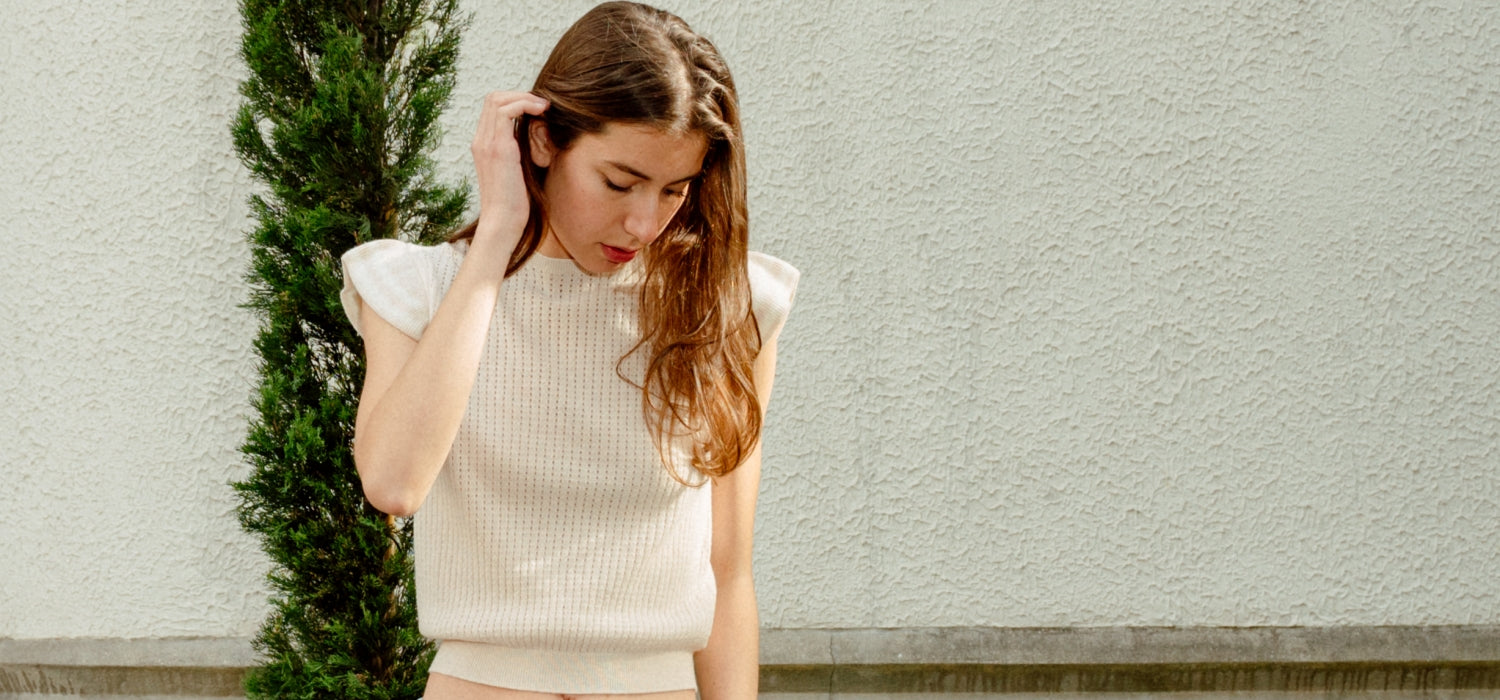 This openwork top emphasizes comfort while promoting an effortless feminine style. Made from pure cashmere and knitted in Italy. Refined sleeveless top with ruffles in contrast color.