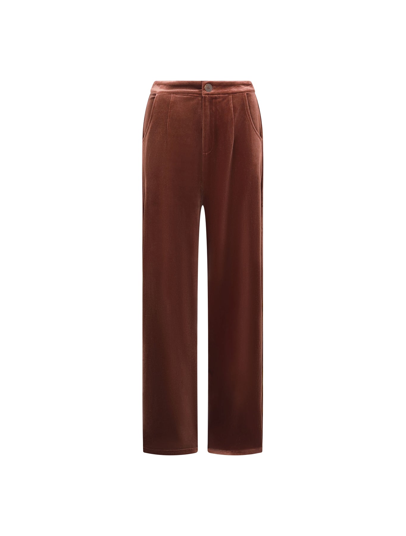 The Velvet Trousers are a high waisted, wide leg and half lined piece. The luxurious drapey trousers feature side pockets and a fly zip and centre front button fastening.