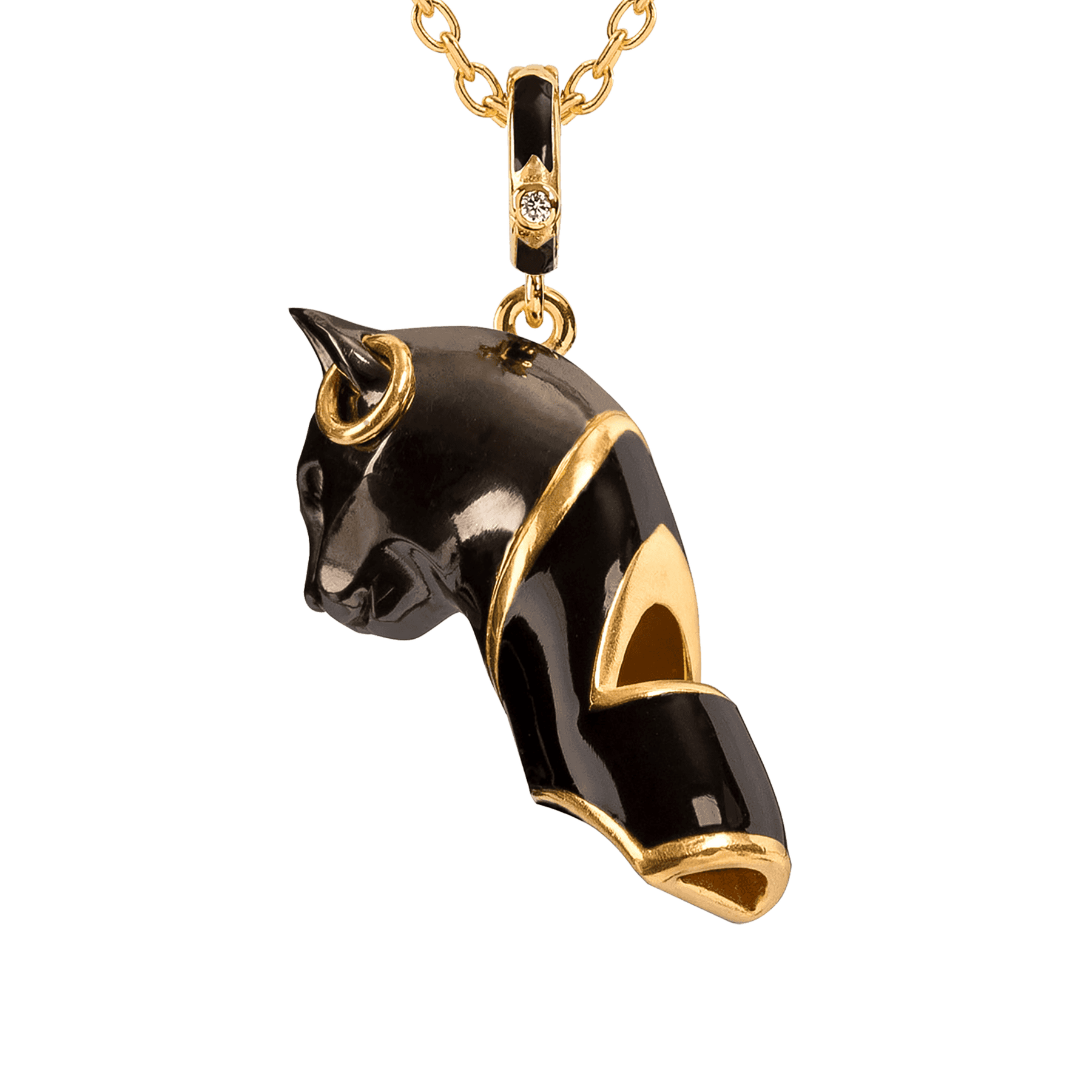 Crafted in the City of Cats, this sculptural pendant hides a fully functional whistle within its sleek silhouette. Graceful in presence, commanding in sound.