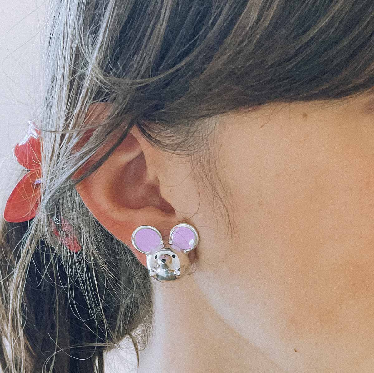 Squeak Chic A playful squeak of charm to any look. Sold as single Sterling Silver || Gold vermeil || Rhodium and enamel Clip-on Dimensions: 15 mm Hand-crafted in Istanbul