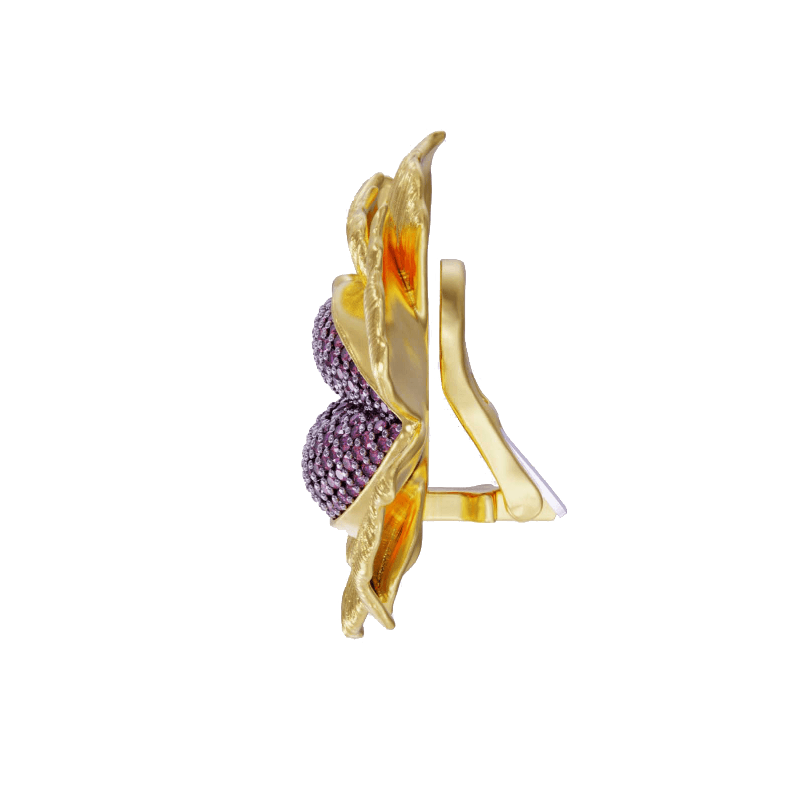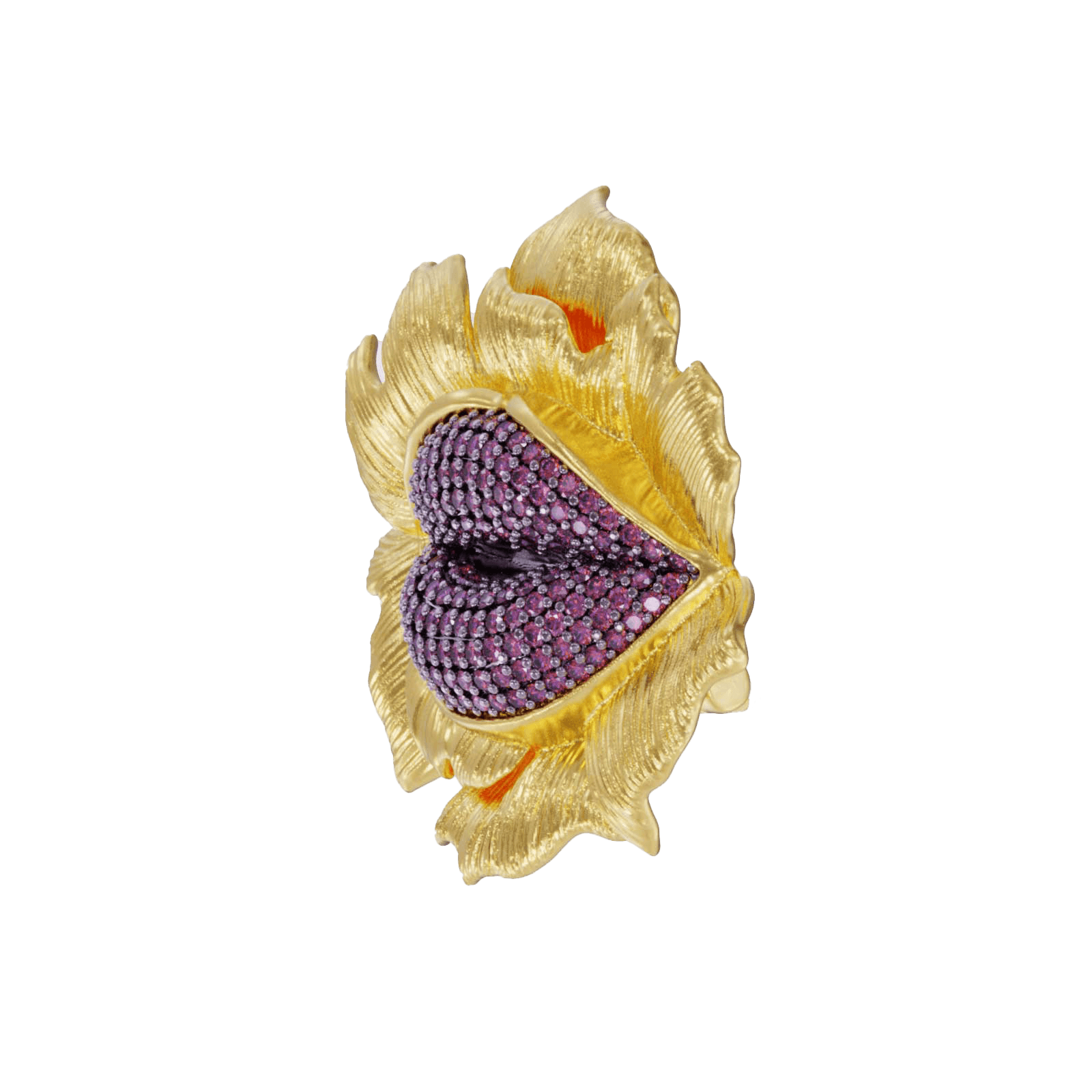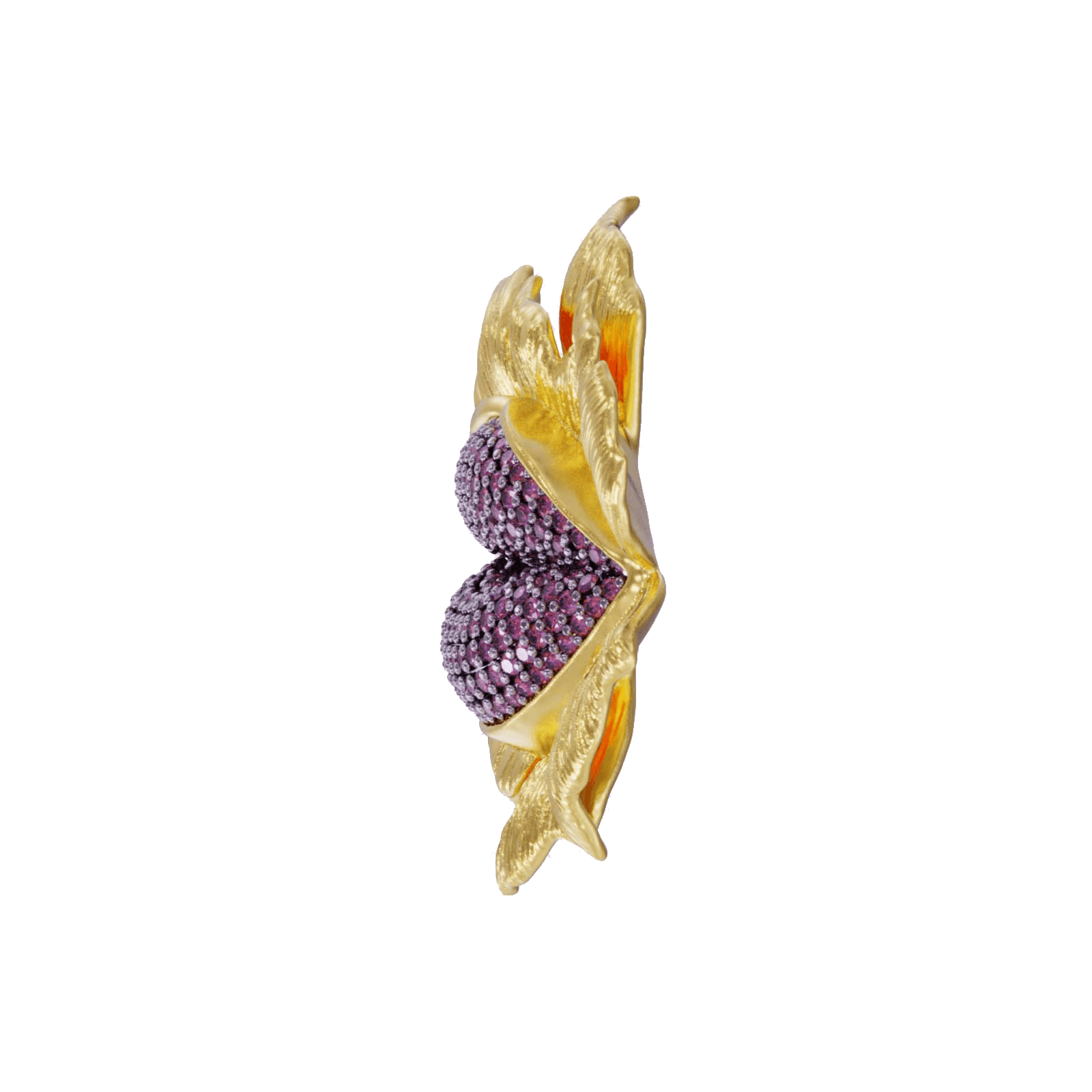 Inspired by the fantastical world of Jacques Demy’s Donkey Skin, these Talking Flower earrings transport you to a realm where imagination knows no bounds. Nestled among candy-colored flora, they reveal a mesmerizing fusion of surrealism and elegance.