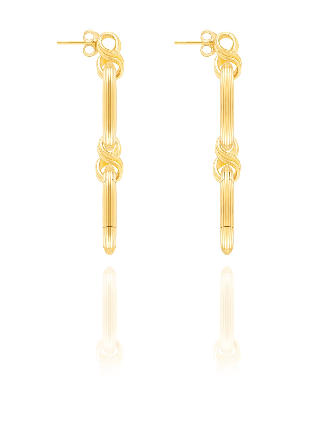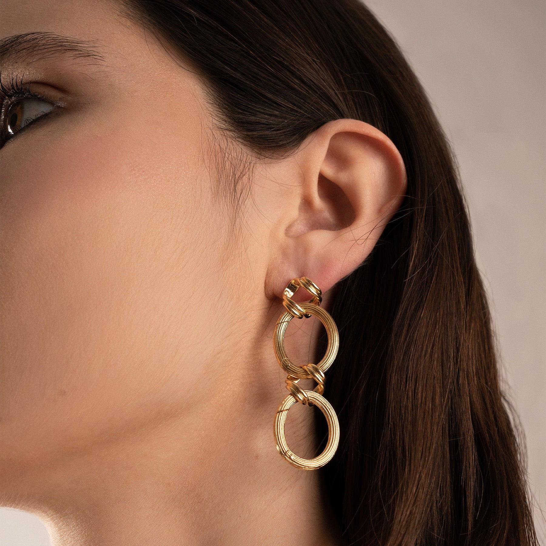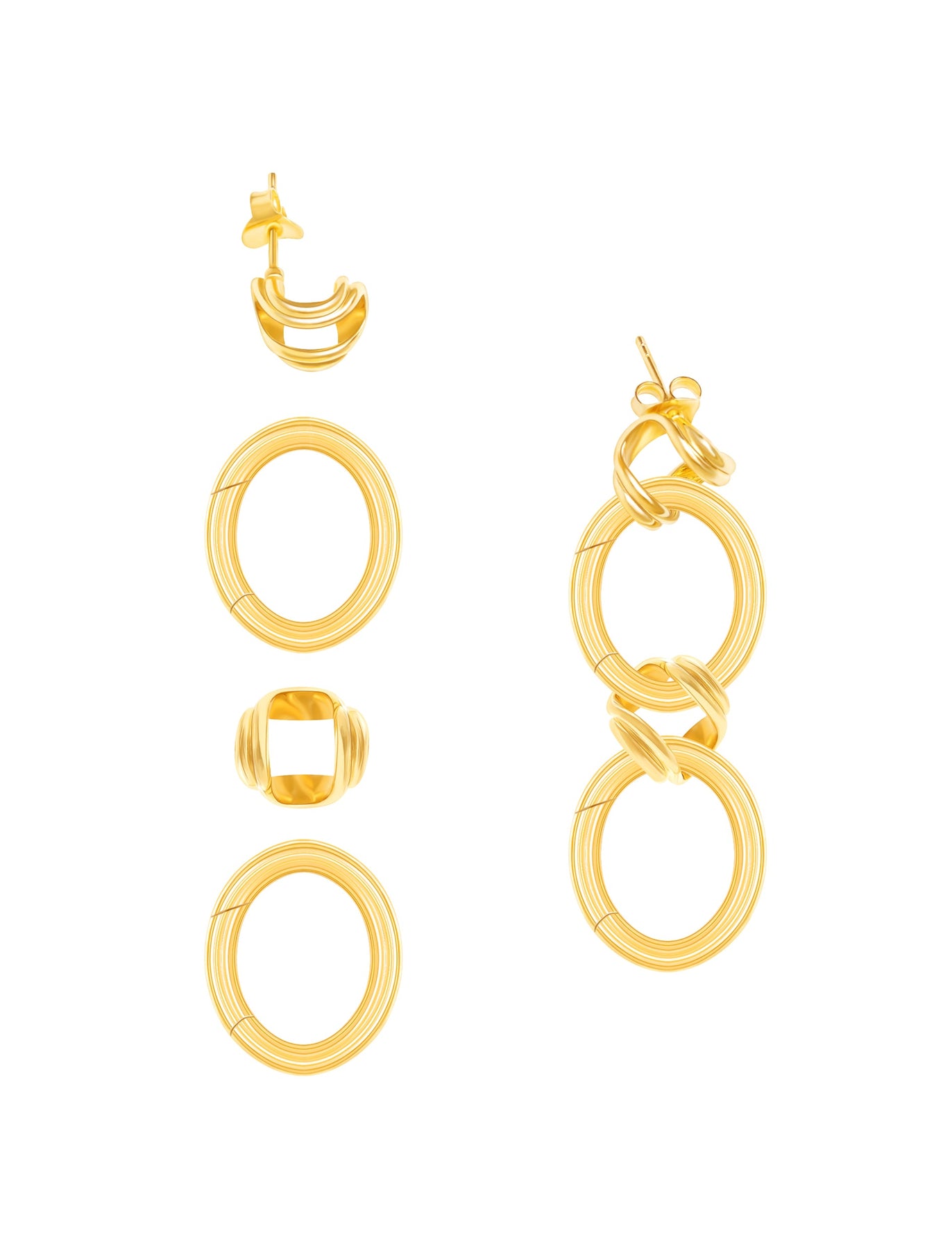 Adorn your ears with the matching earrings to the Lustrous Kingdom necklace. Our revolutionary adjustable matching chain link design introduces a new sustainable approach to customizing jewelry. These luxury jewelry pieces are versatile and interchangeable. Complete the jewelry set with these matching earrings that can be worn more than 7 different ways!