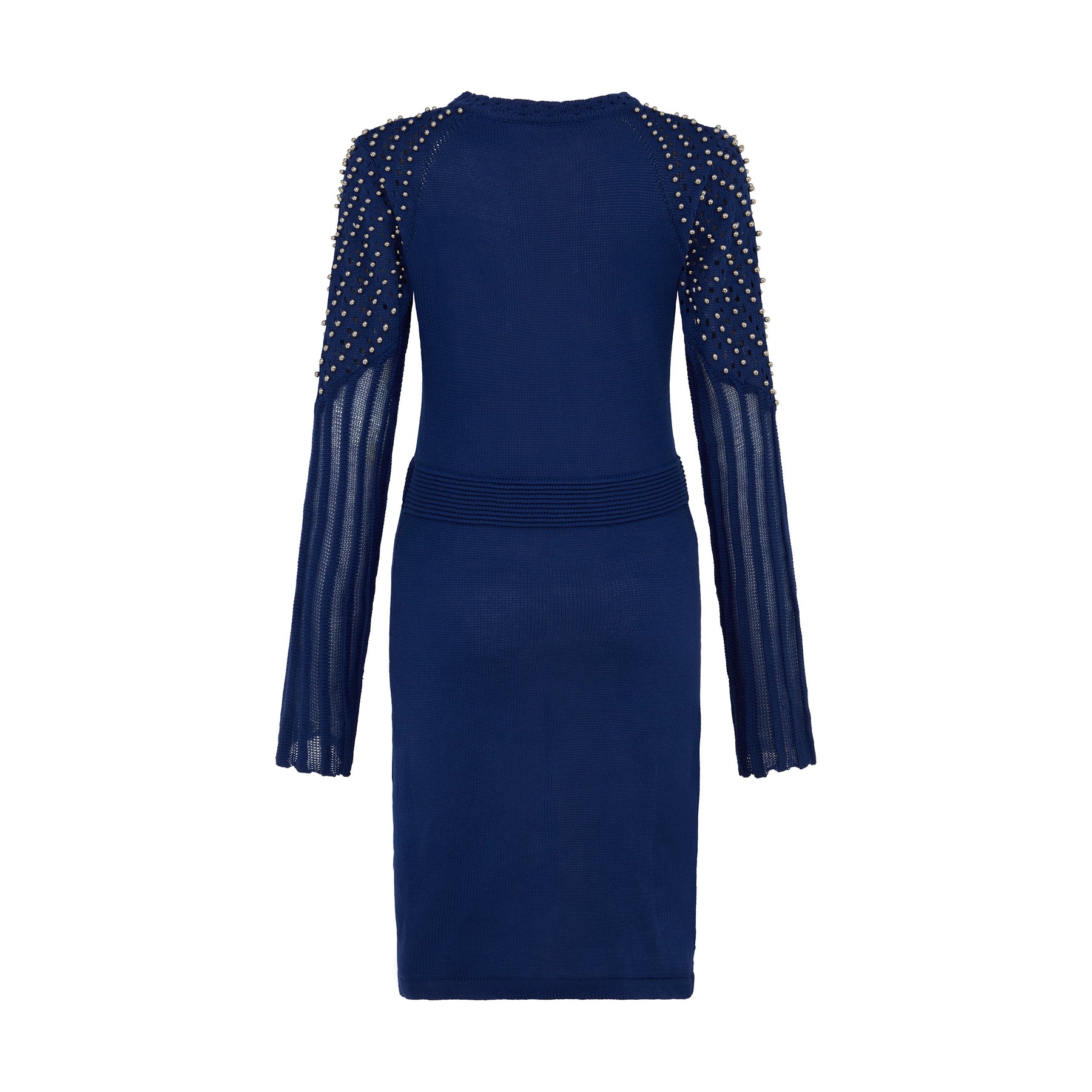 Studded Sheer Knit Mini Jumper Dress in Midnight Blue