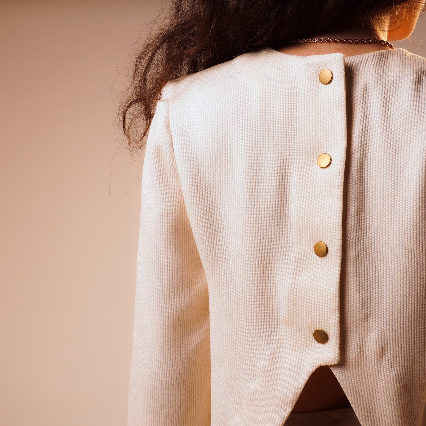 Introducing our Cream Fringe Top, a statement piece that adds flair to any ensemble! Crafted with a front layer design and adorned with signature fringe details along the hem and sleeves, this top exudes effortless elegance. Featuring a convenient back popper opening, it combines style with practicality.