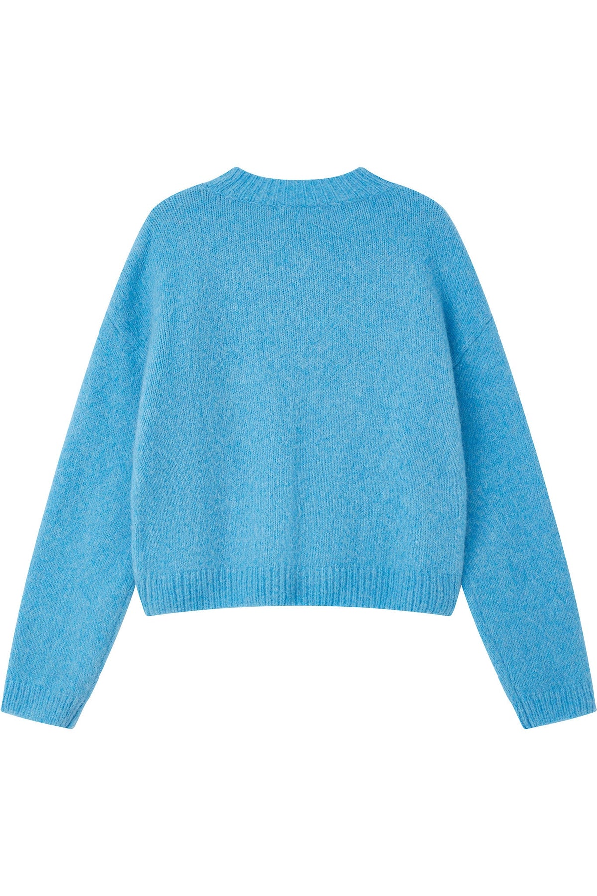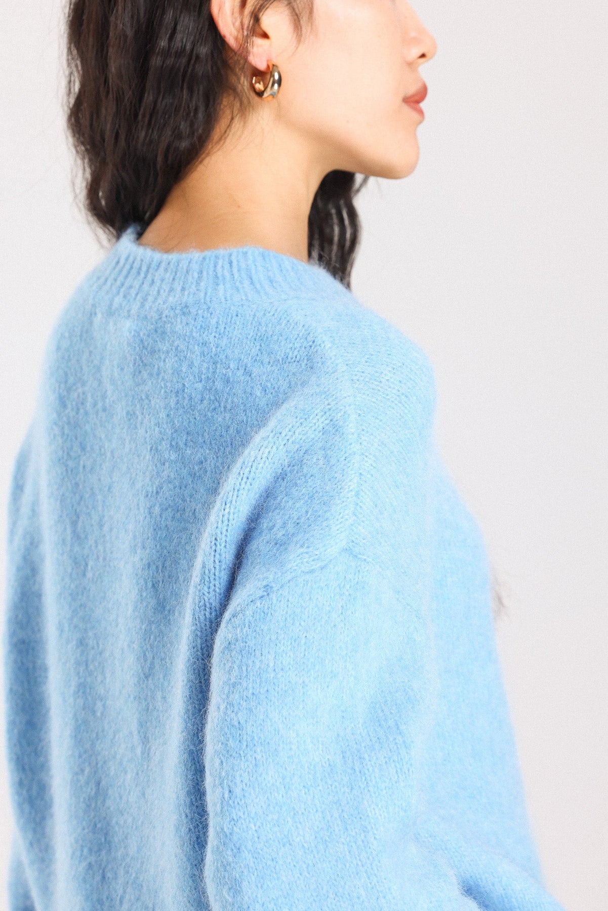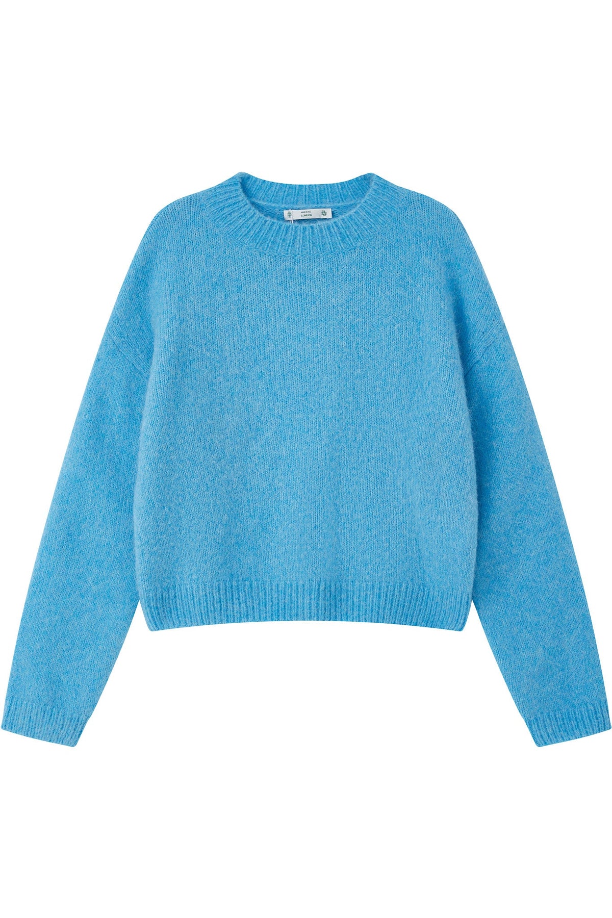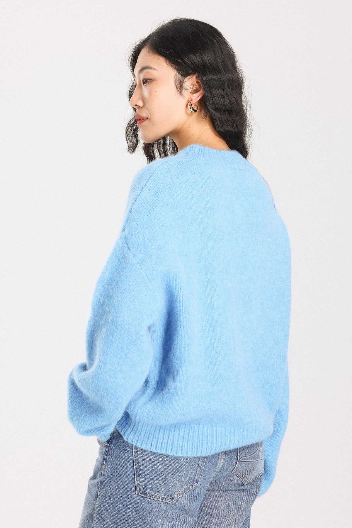 This stylish sky blue sweater offers a relaxed silhouette with a classic crew neckline, bringing a pop of color and warmth to your outfit.
