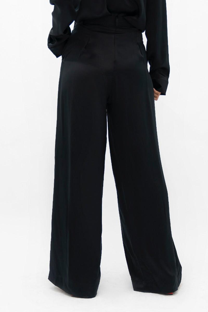 Details - High waisted pants with hand-finished hems- Inverted pleats ironed along the front and back for a crease mark look- Invisible zipper on the side- Front in hip pockets - Belt loops- 1 People brass logo on belt carrier- Made in Solo, Indonesia- bluesign® certified silk & dyeing- The pants length is 110 cm in size M (as reference for remaining sizes)