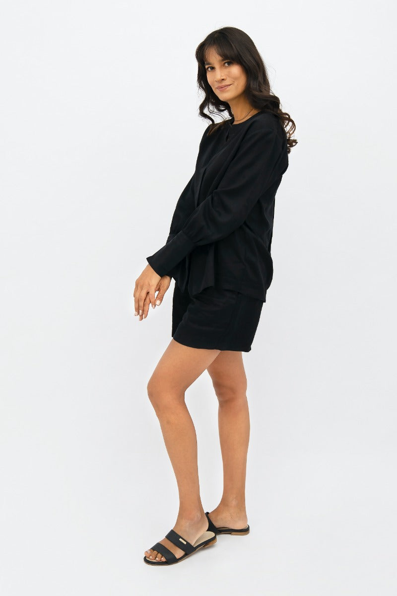Details - Relaxed silhouette- Round neck and button placket- Slight wash effect- Structured light denim fabric- The dye of Licorice & Sommerhus are GOTS certified- The buttons are Eco-rozo, recycled buttons made from tagua waste