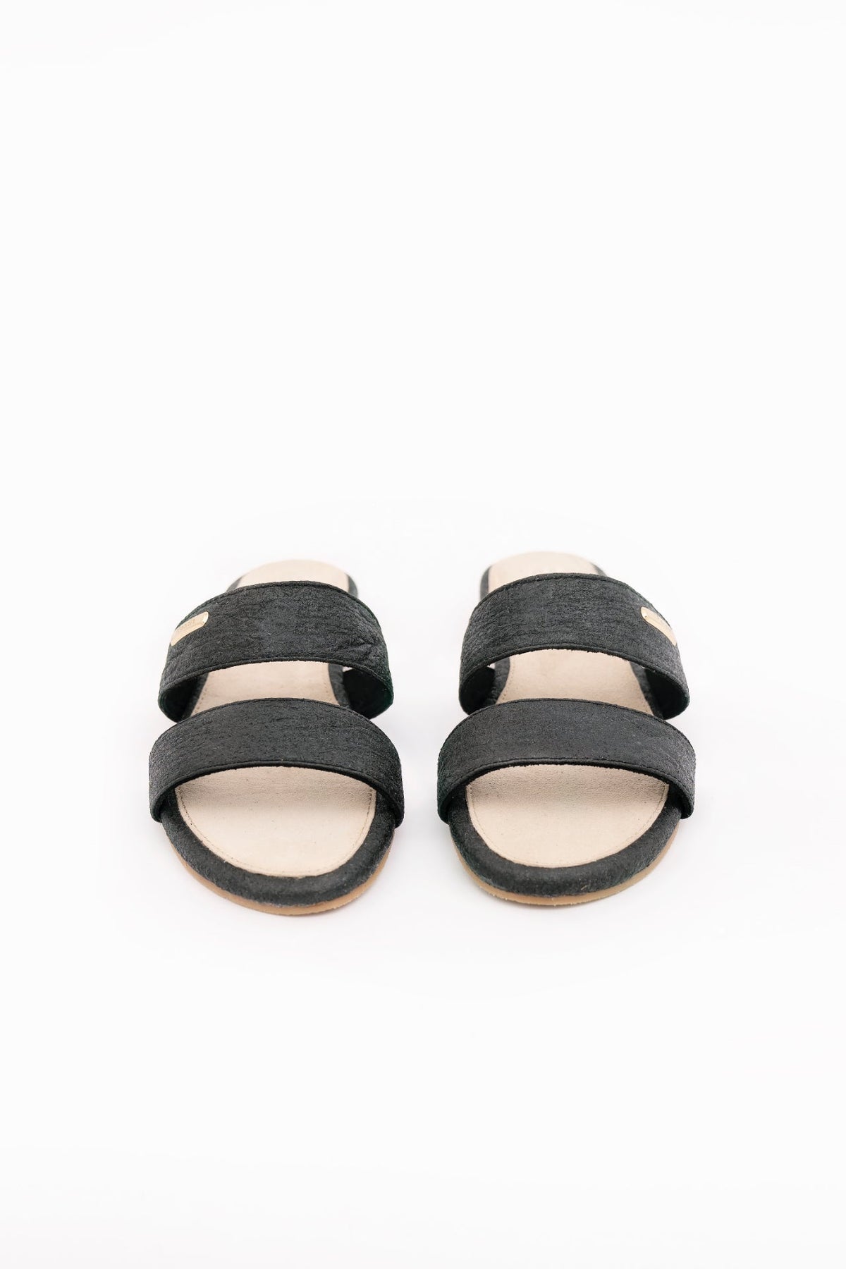 - 1 cm heels made from ethically harvested teak wood & treated with Tung Oil- Signature 1 People recycled brass logo- Slip-on style- Double wide-cut straps- Open toe- Slim sole- Embroidered 1 People logo on the insole in matching colour- Eco-friendly insole materials- Crafted from innovative and sustainable textile - Piñatex®- Available in 2 colours - Charcoal and Canela- GOTS certified dyed Piñatex®- GRS certified Eco Suede