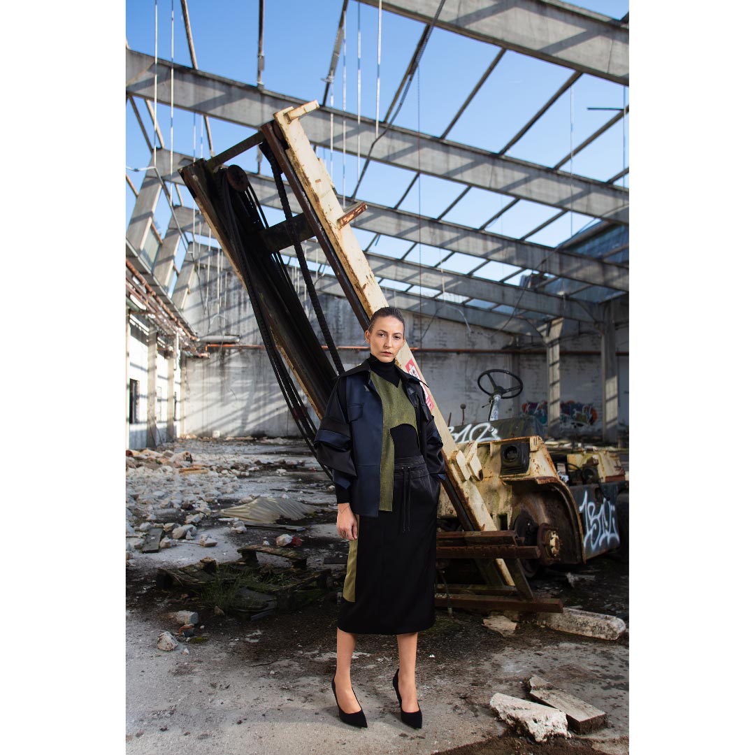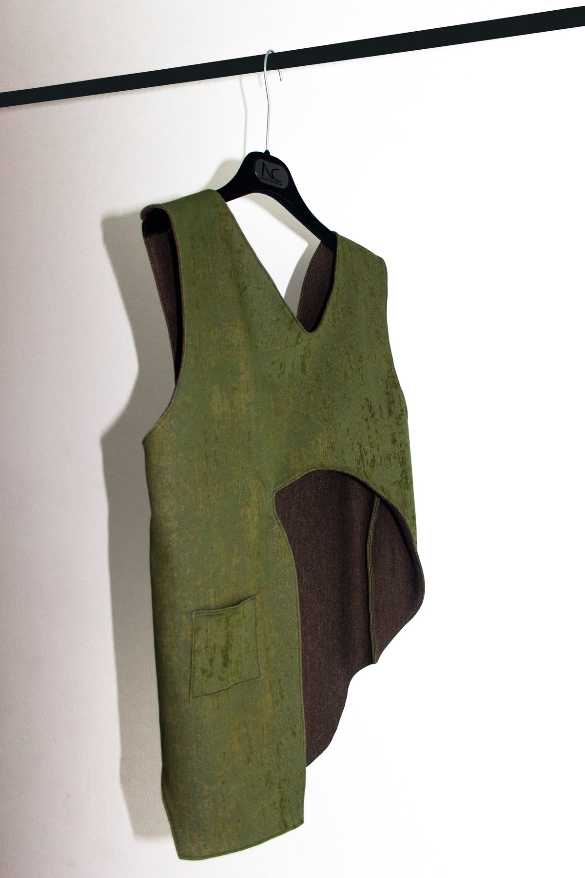 Ikebana means "making flowers alive" is the Japanese art of flower arrangement that was used at the traditional school of martial arts with roots in the Samurai tradition. The Ikebana Vest is made at one side of a special floral denim fabric that represents this traditional arrangement, the other side is made of brown ponte di roma knit fabric. Inspired as usual by Japanese martial arts, Noah Christian created a modern and at the same time classic designer piece for the sophisticated XXI century woman. Finished with classic french seams, it is a 2 in 1 designer piece that can be used from both sides, the green or brown side.