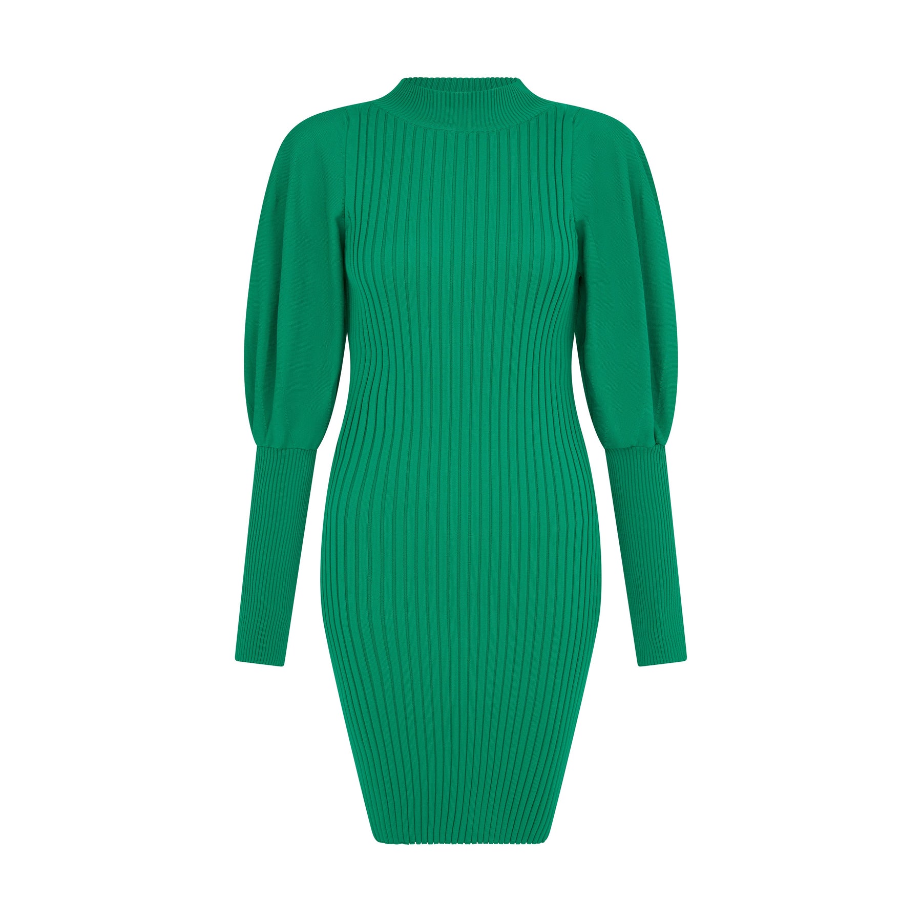 Look effortlessly chic with this green knitted mini dress. Constructed from a medium ribbed knit in a beautiful green haze with eye-catching puff sleeves - this funnel neck jumper dress ensures a sleek and flattering silhouette. For a showstopping ensemble, pair this dress with ankle boots or knee-high boots.